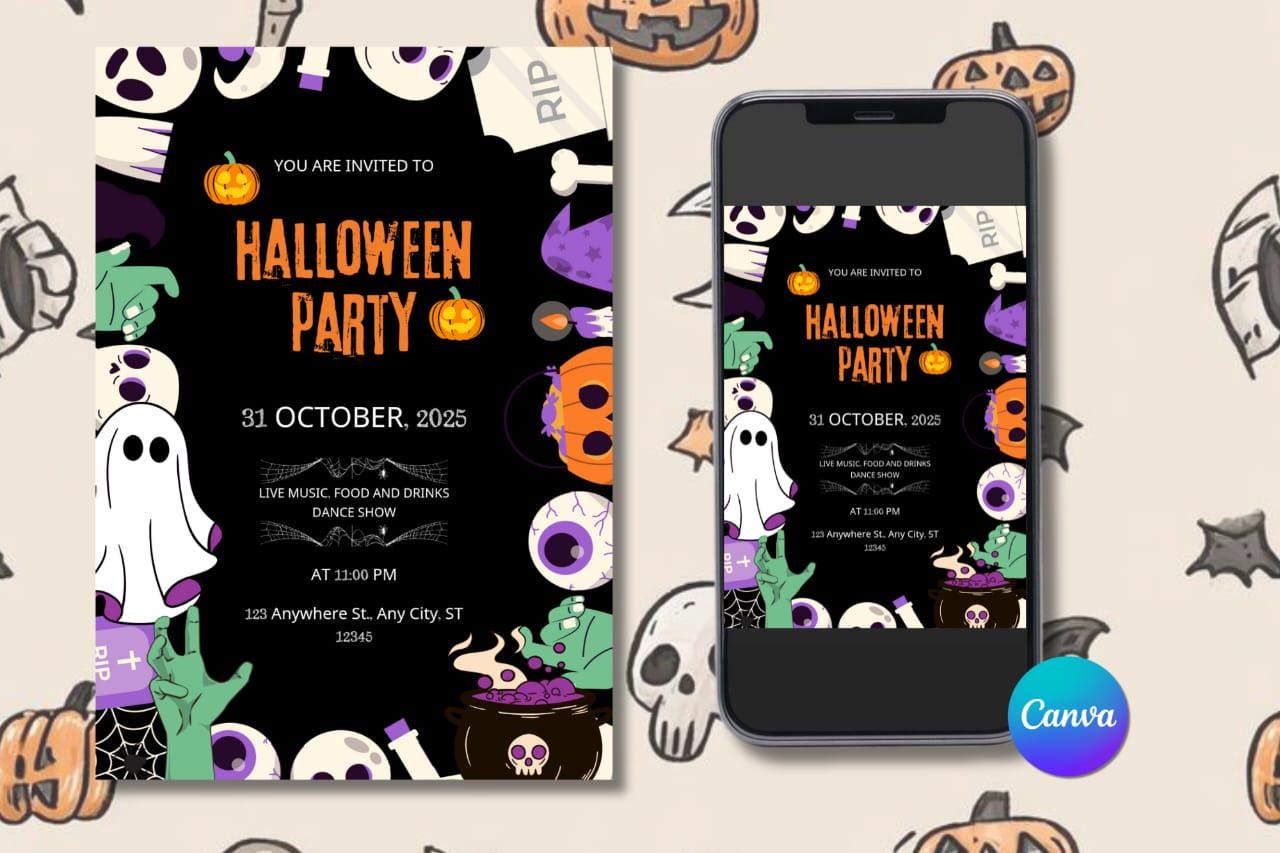 🎃 Spooktacular Halloween Party Invitation – Editable Canva Template (Instant PDF Download) 👻