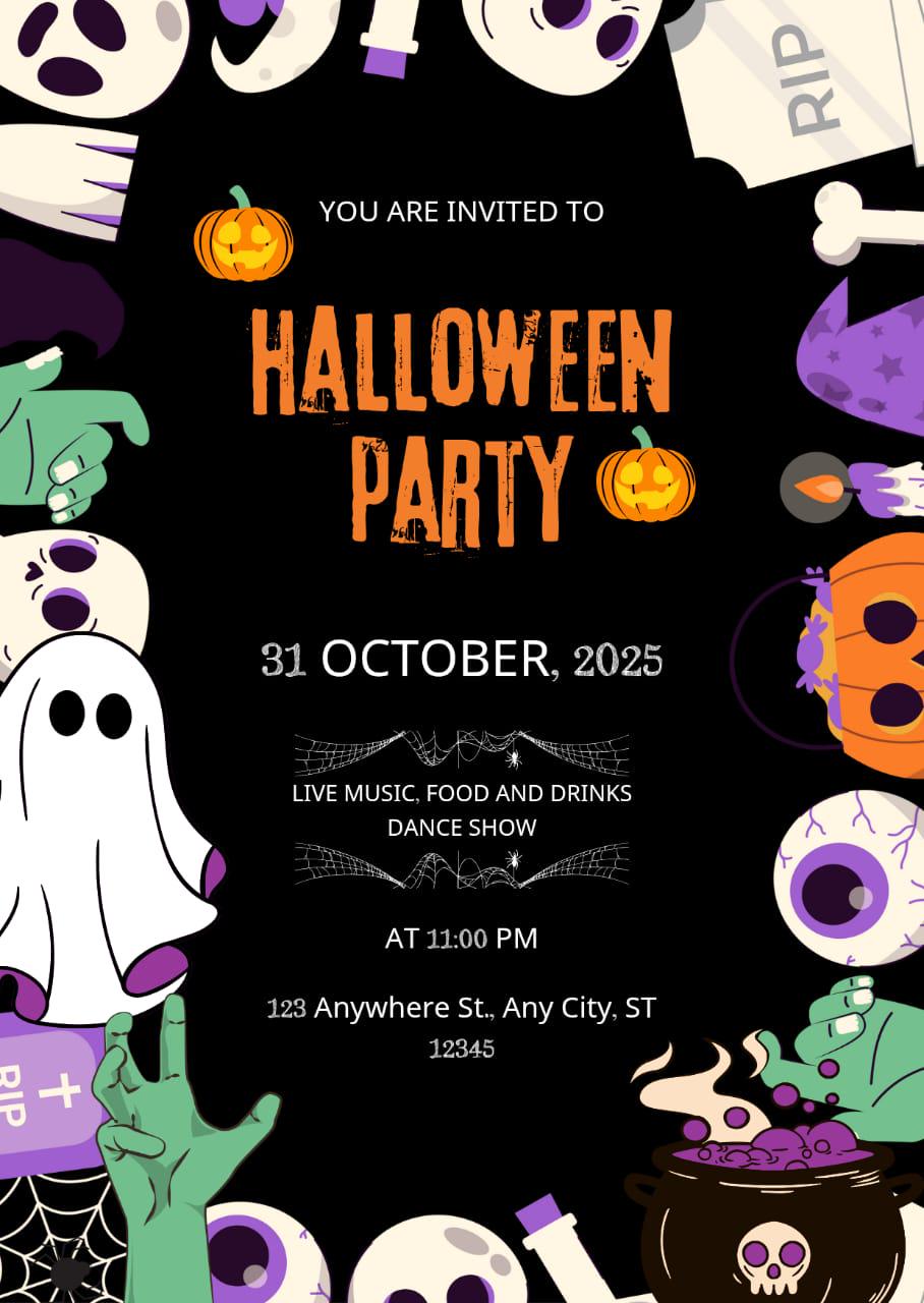 From the moment they receive your invitation, your guests will know they’re in for a treat (and maybe a few tricks!). This template helps you set the mood with style and ease.