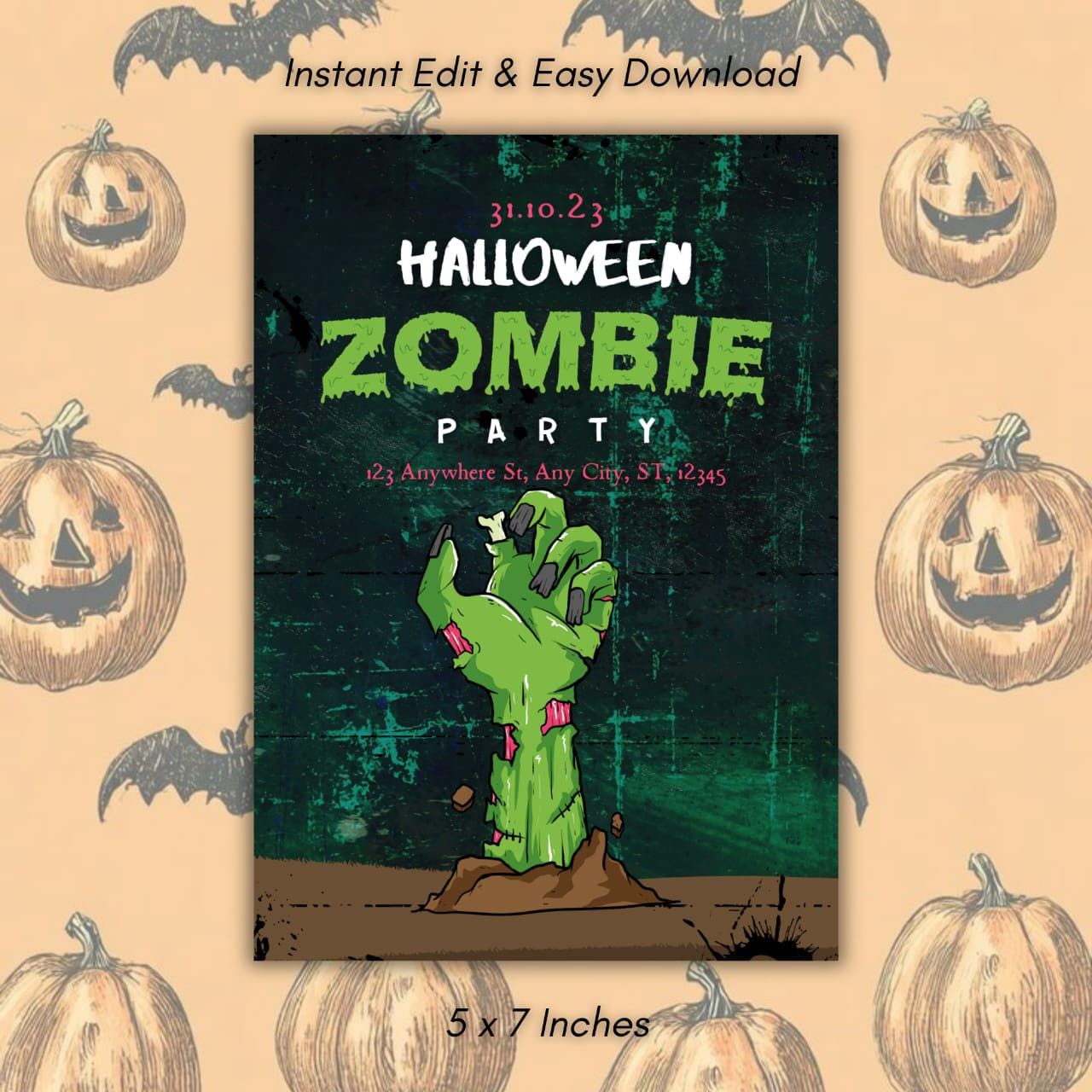 Editable Zombie Party Invitation Editable Zombie Halloween Party Invitation, Canva Template, Spooky Graveyard Theme, Horror Party, Haunted Ghost House Invitation Canva Template, Spooky Graveyard Theme, Horror Party, Haunted Ghost House Invitation