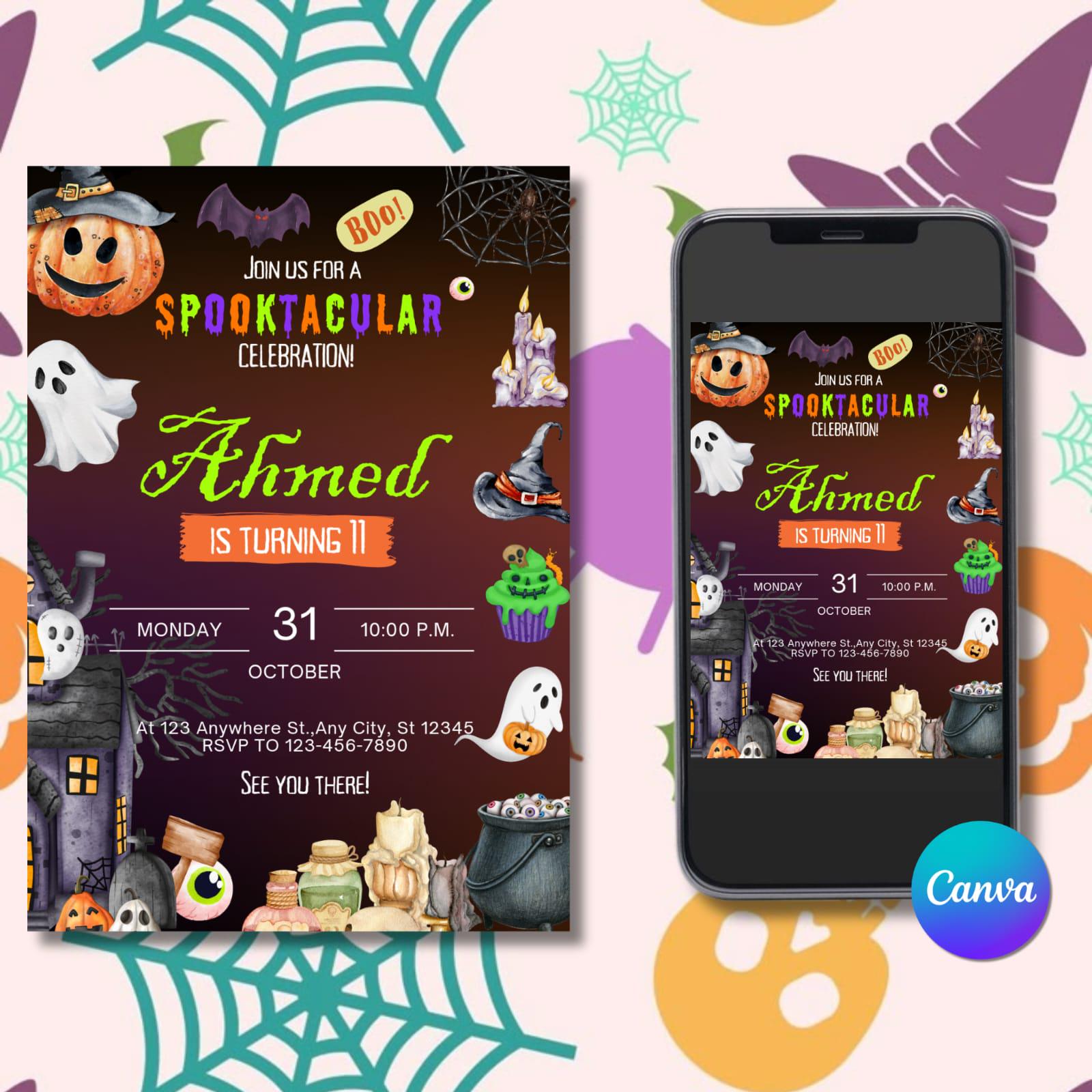 Spooky Halloween Party invitation Spooktacular Party invitation, Editable Boy Birthday Invitation, Ghost Invitation, Halloween Spooky e-Vite, Party e-Card, Canva Template Spooktacular Party invitation, Editable Boy Birthday Invitation, Ghost Invitation, Halloween Spooky e-Vite, Party e-Card, Canva Template