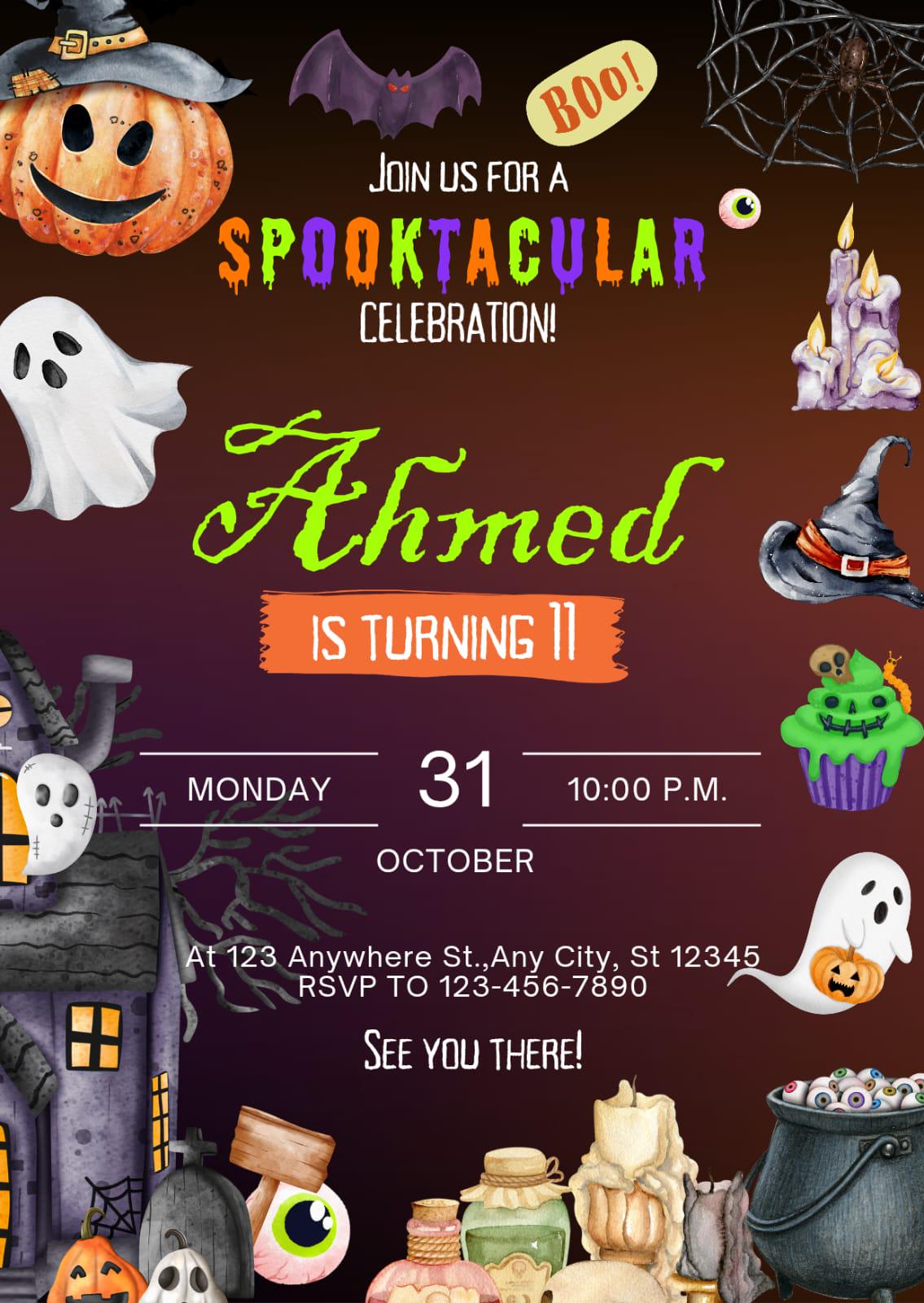 Spooktacular Party invitation, Editable Boy Birthday Invitation, Ghost Invitation, Halloween Spooky e-Vite, Party e-Card, Canva Template