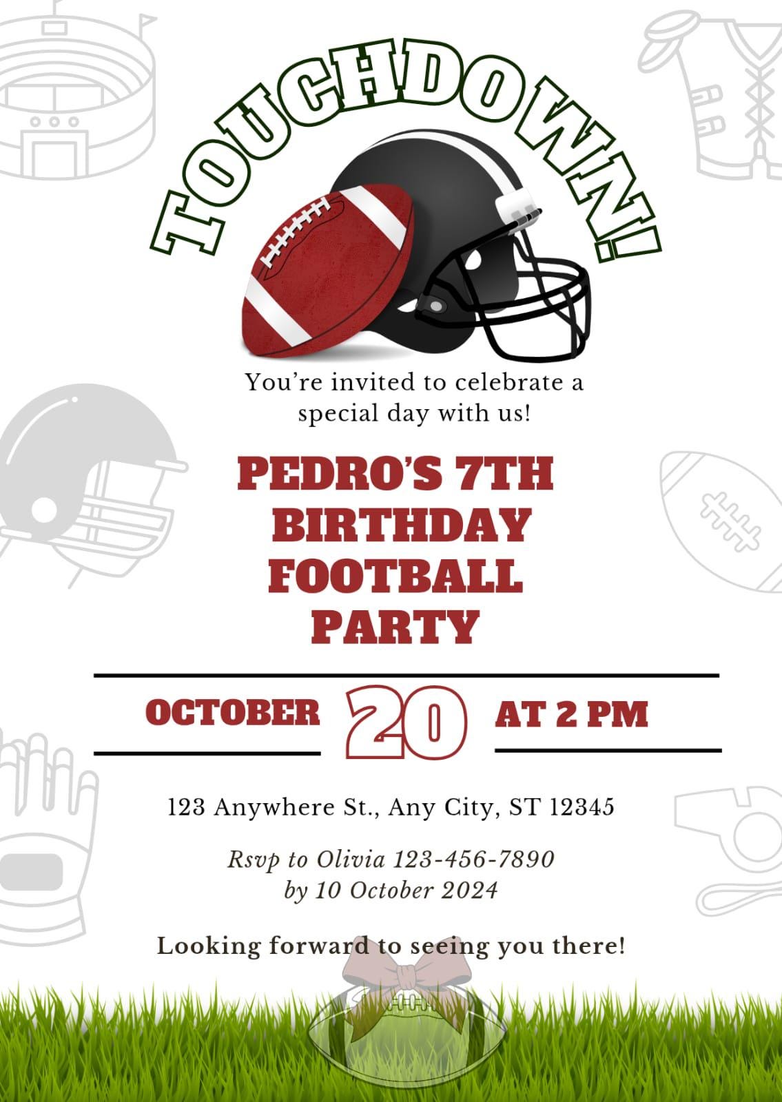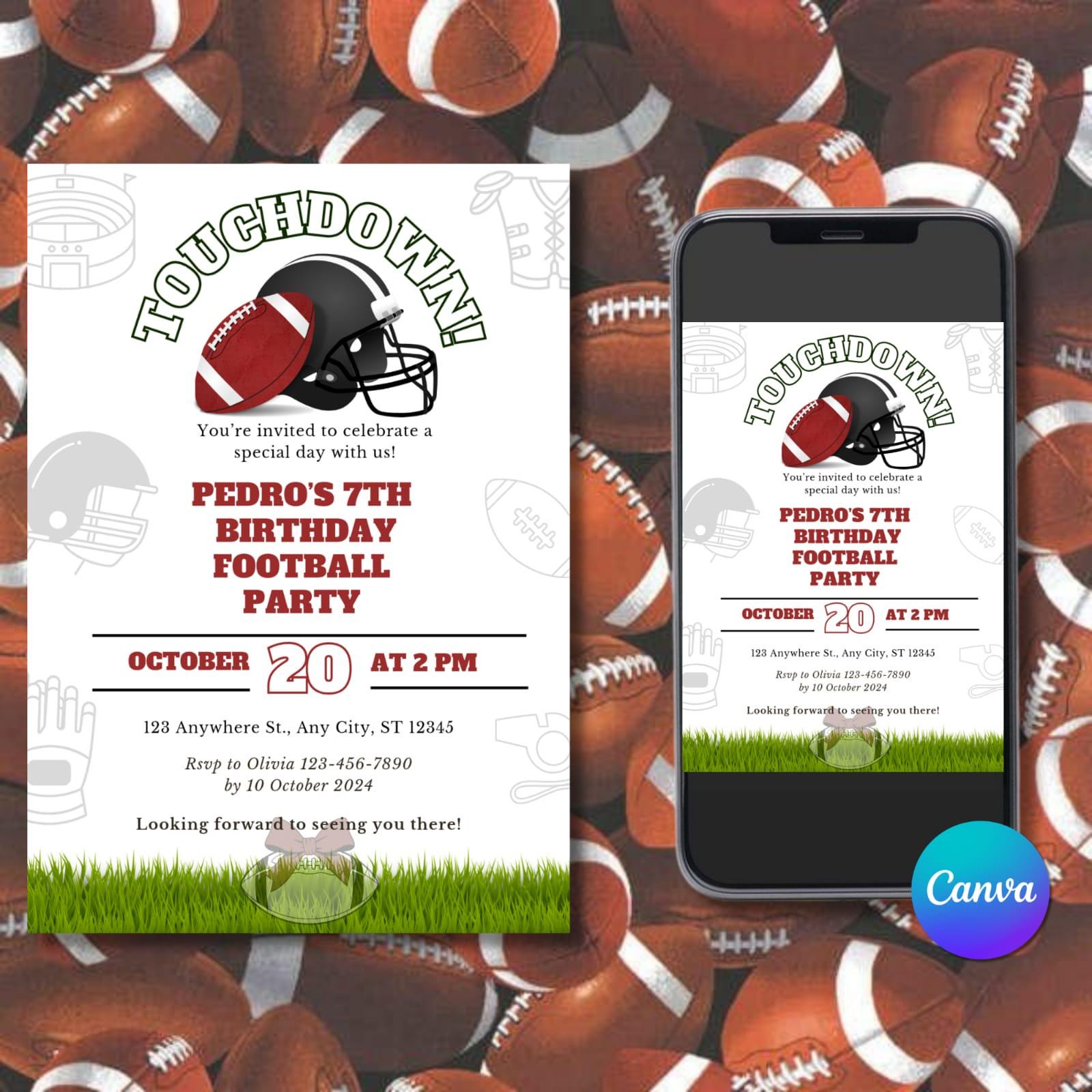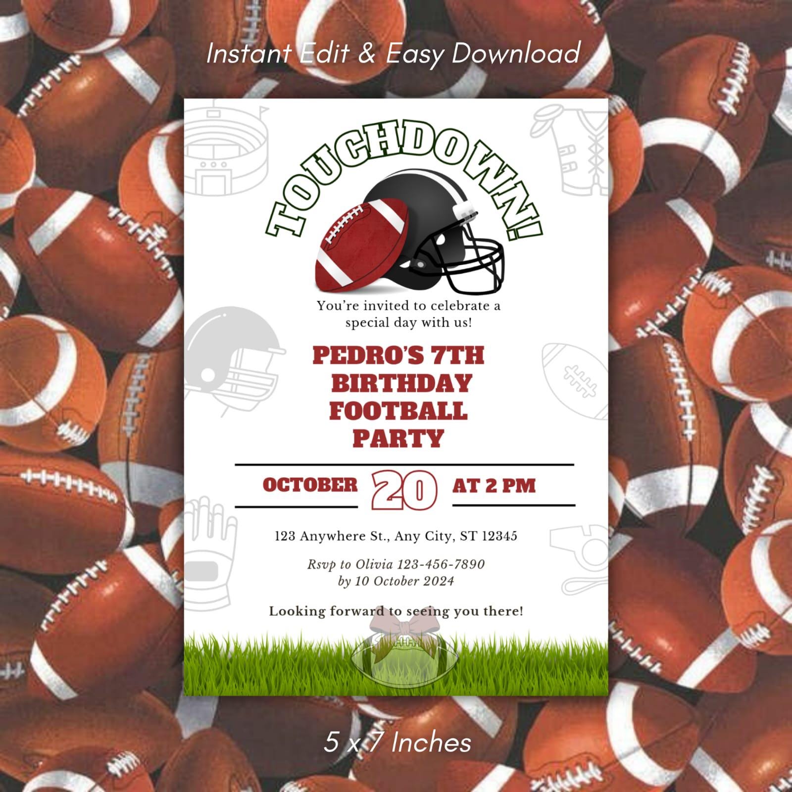 American Football Birthday Invitation, Boy Sports Day, Touch Down Party, EDITABLE Football Printable Invitation, Football Game Time
