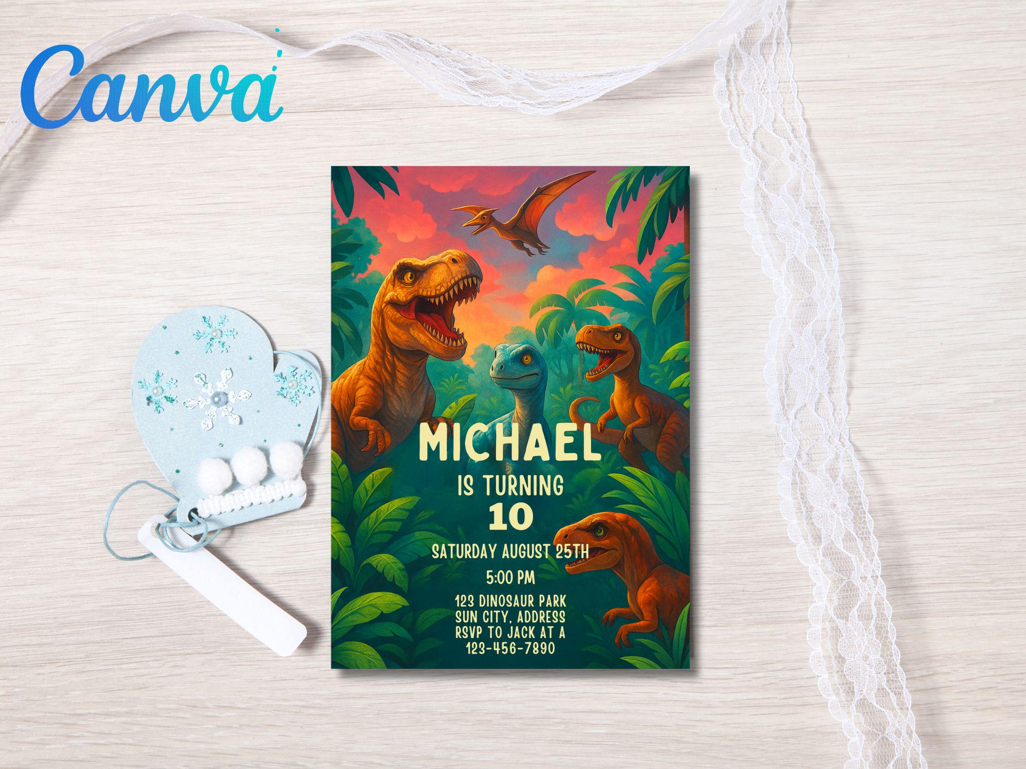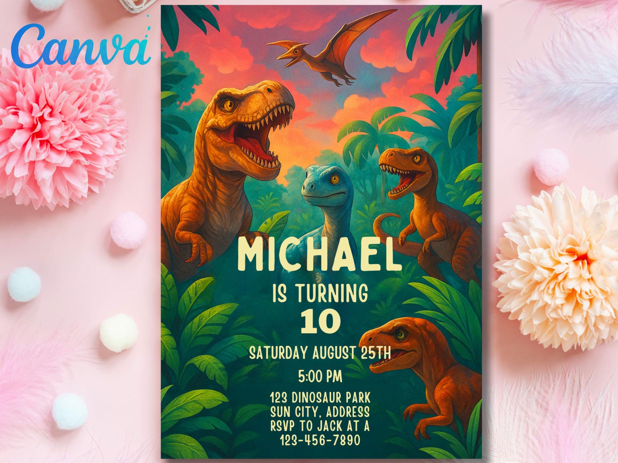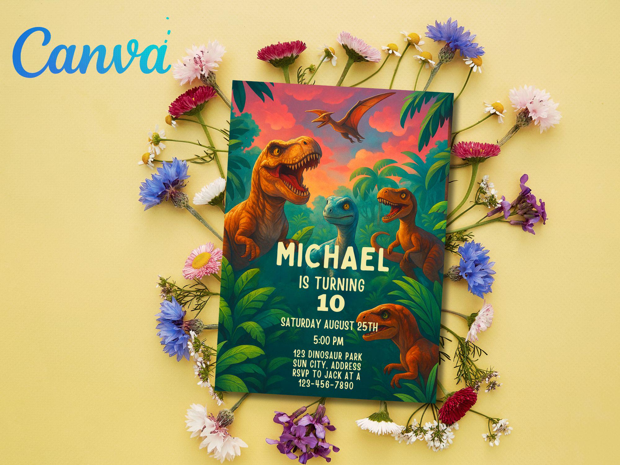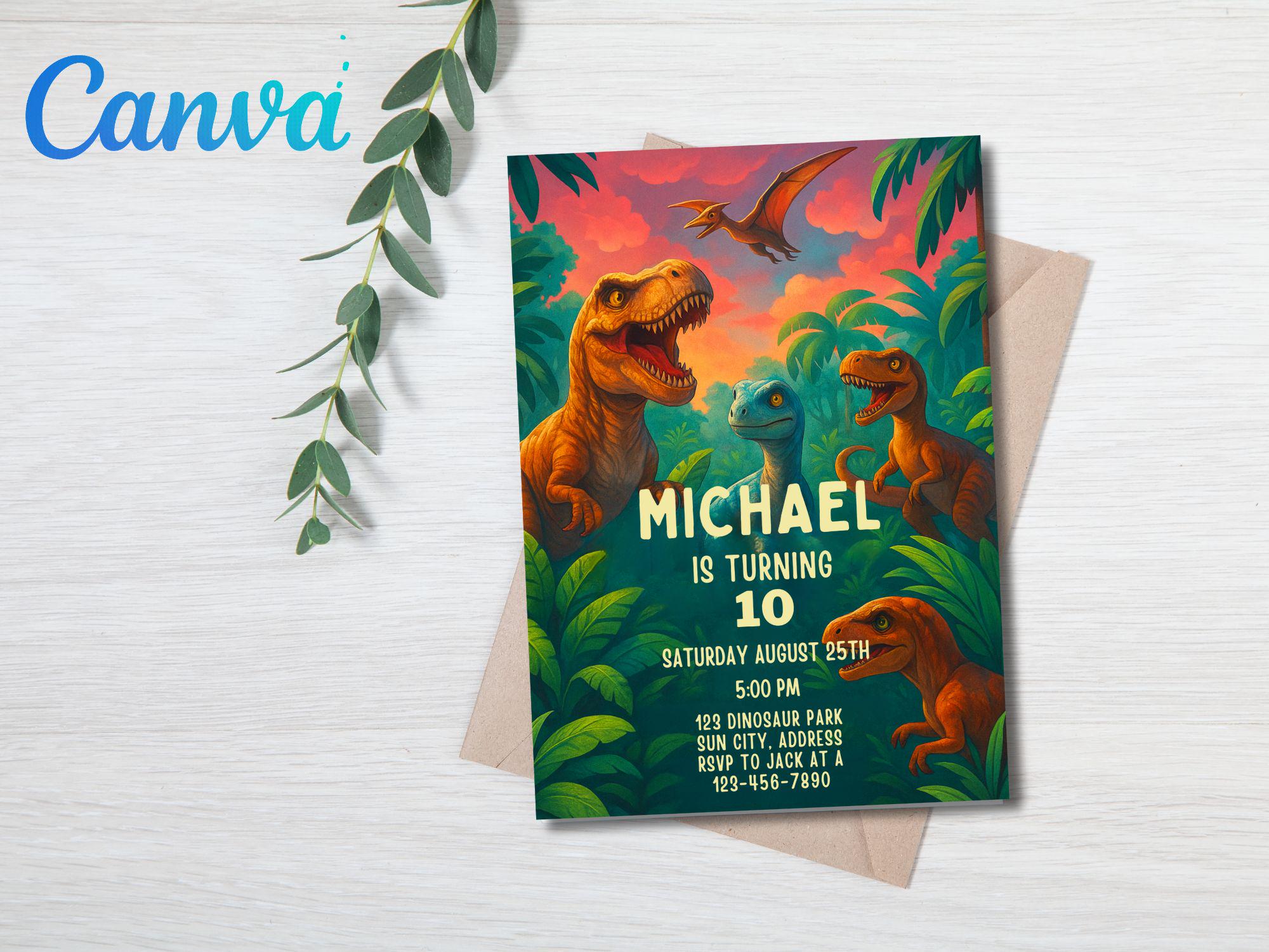 Stomp, roar, and party like a dinosaur! 🦖 This Dinosaur Birthday Invitation Template is perfect for little explorers who love T-Rex, Jurassic adventures, and dino fun. Whether it’s a 1st, 3rd, 5th, or any age birthday, this customizable design will set the stage for an unforgettable prehistoric celebration.