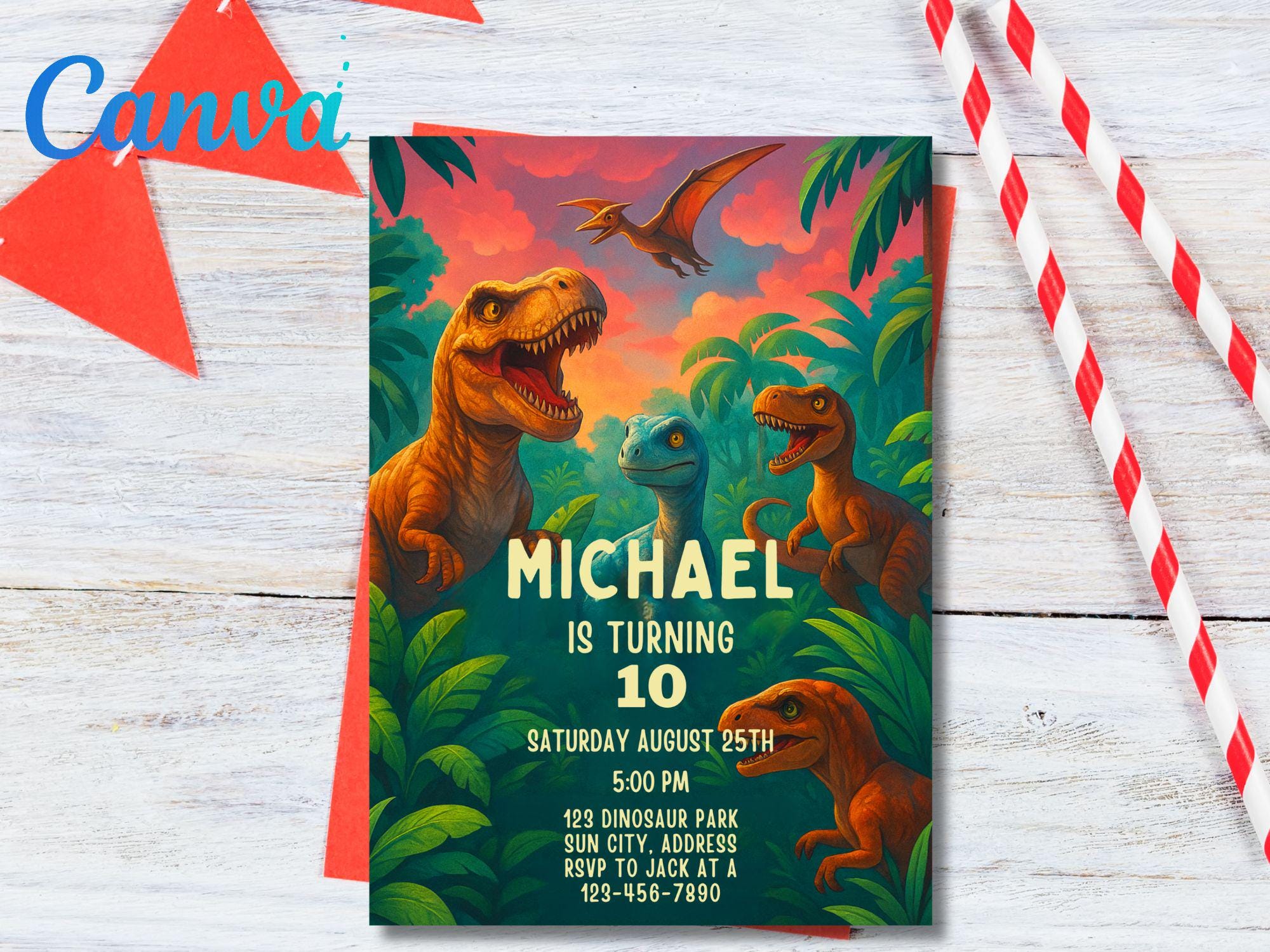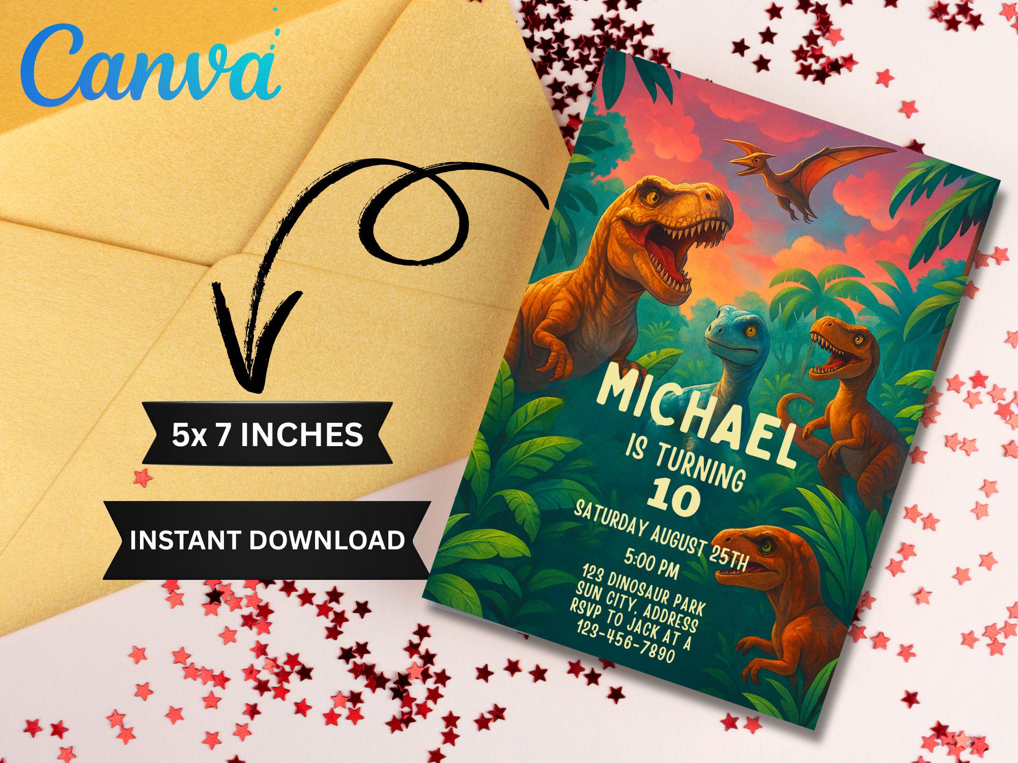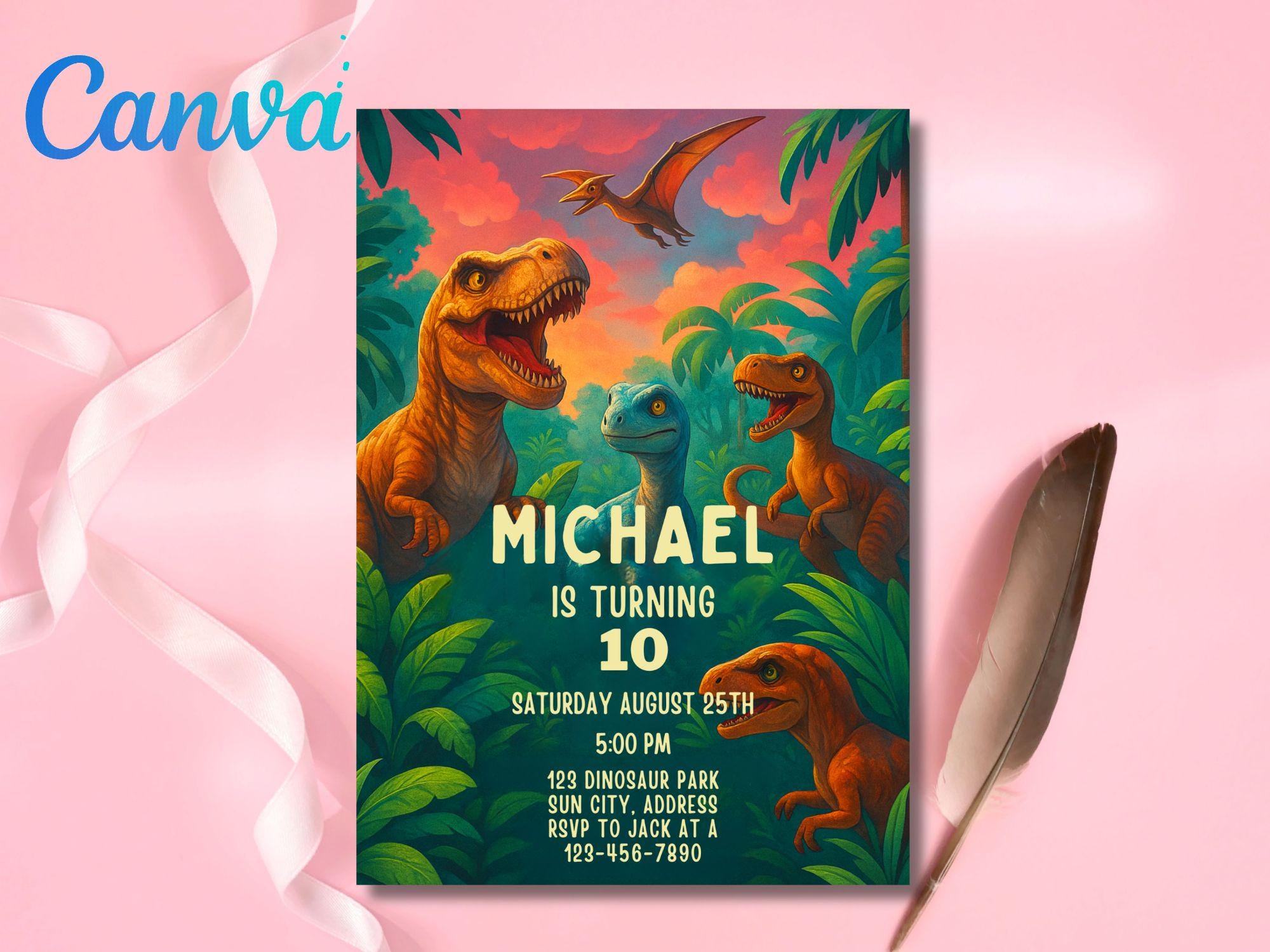 Editable Dinosaur Invitation, Dinosaur Birthday Party Invitation, Dinosaur World Invite, T-Rex Party Invite, Jurassic 5th Birthday Invite