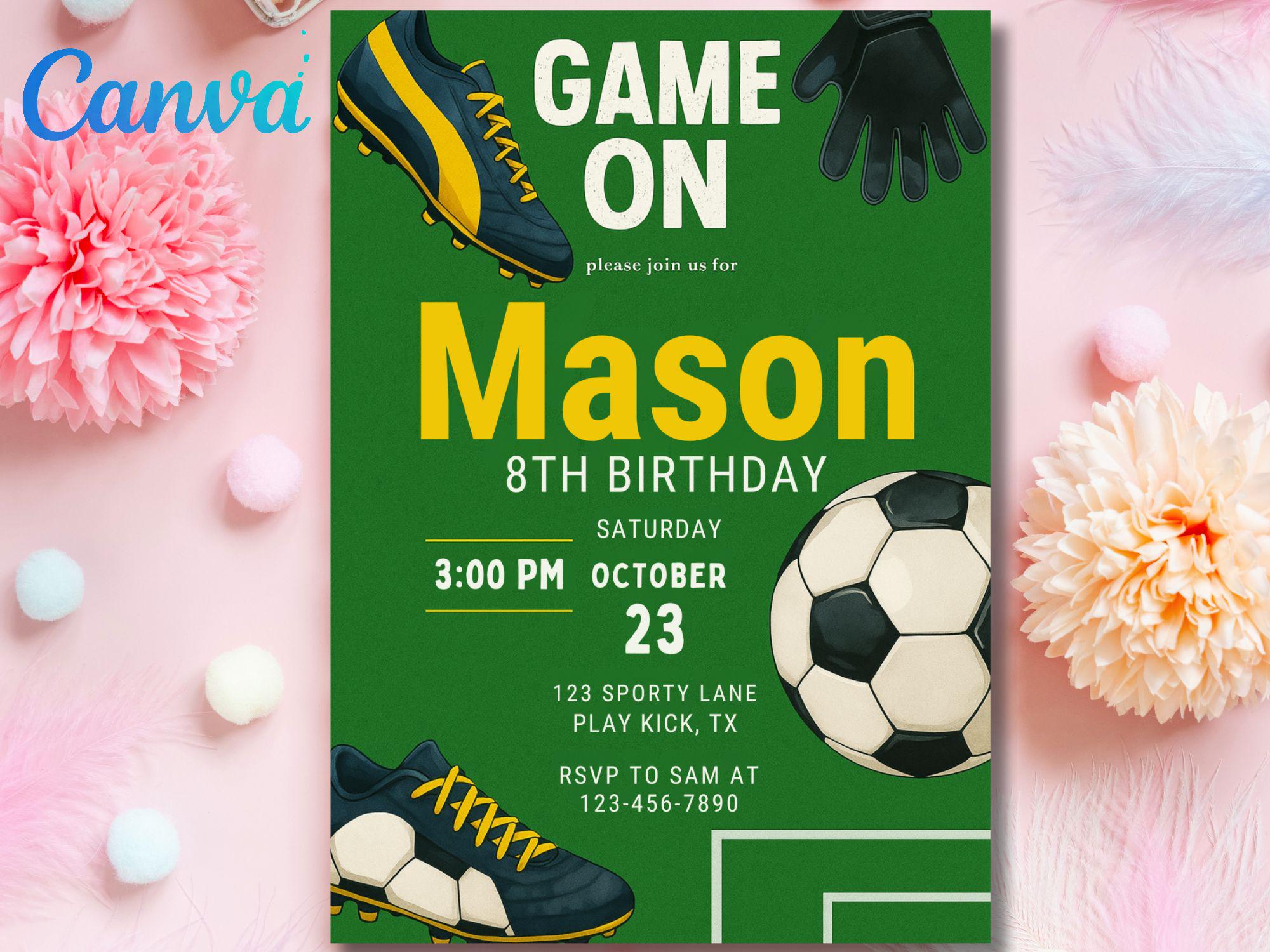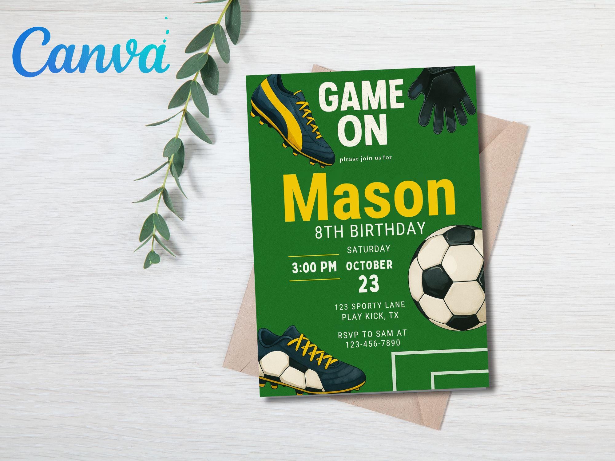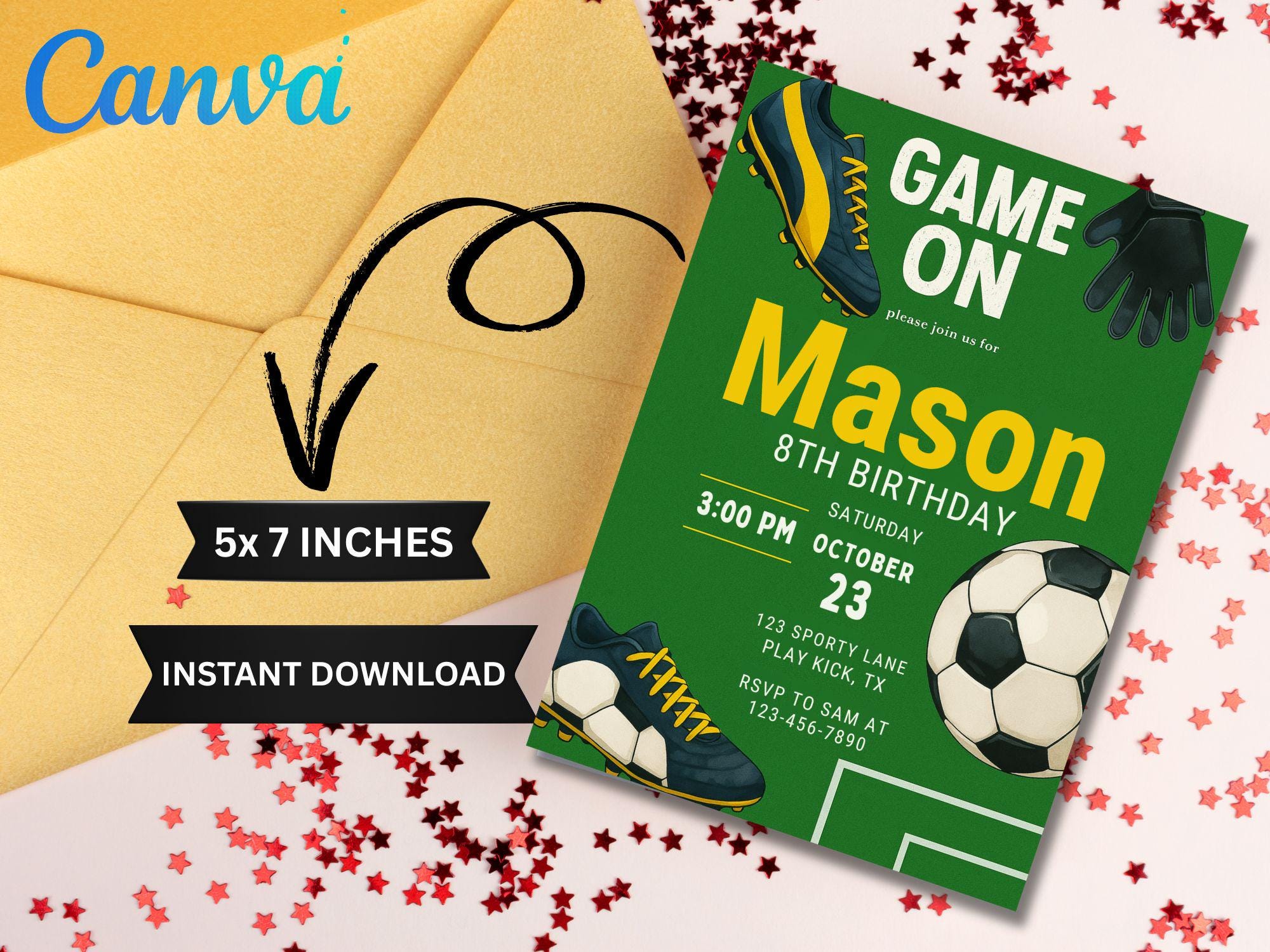 Soccer Birthday Invitation, Editable Soccer Party Invite, Sports Theme, Kids Football Birthday, Instant Download, Digital Template