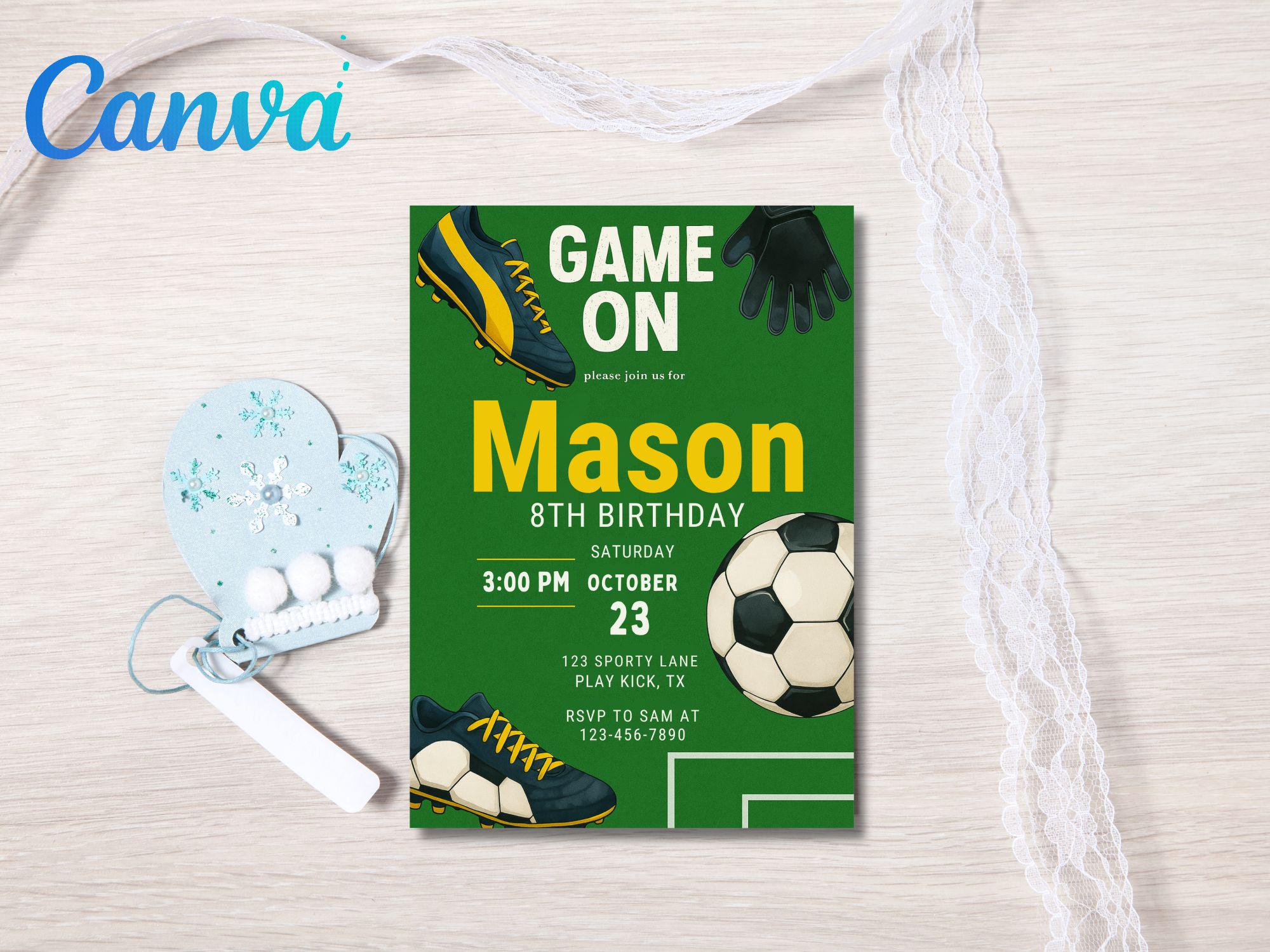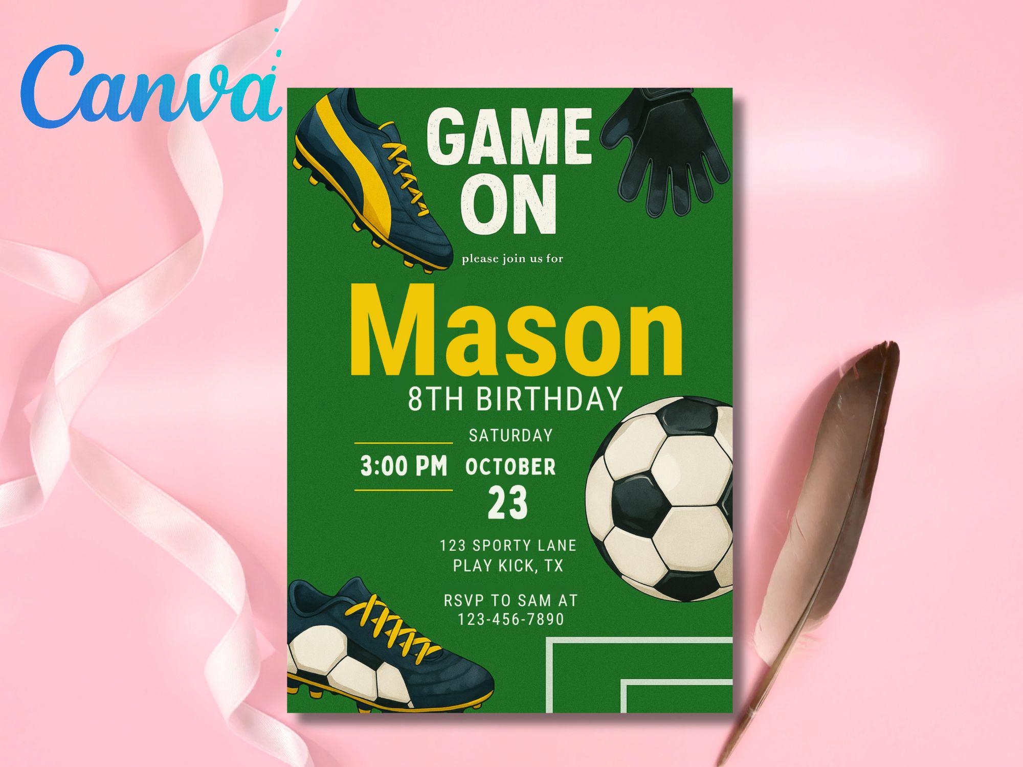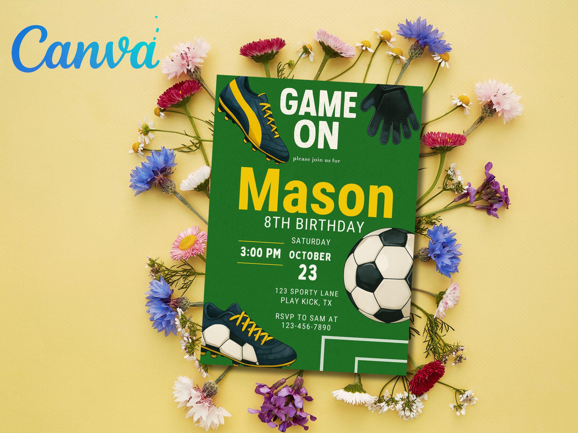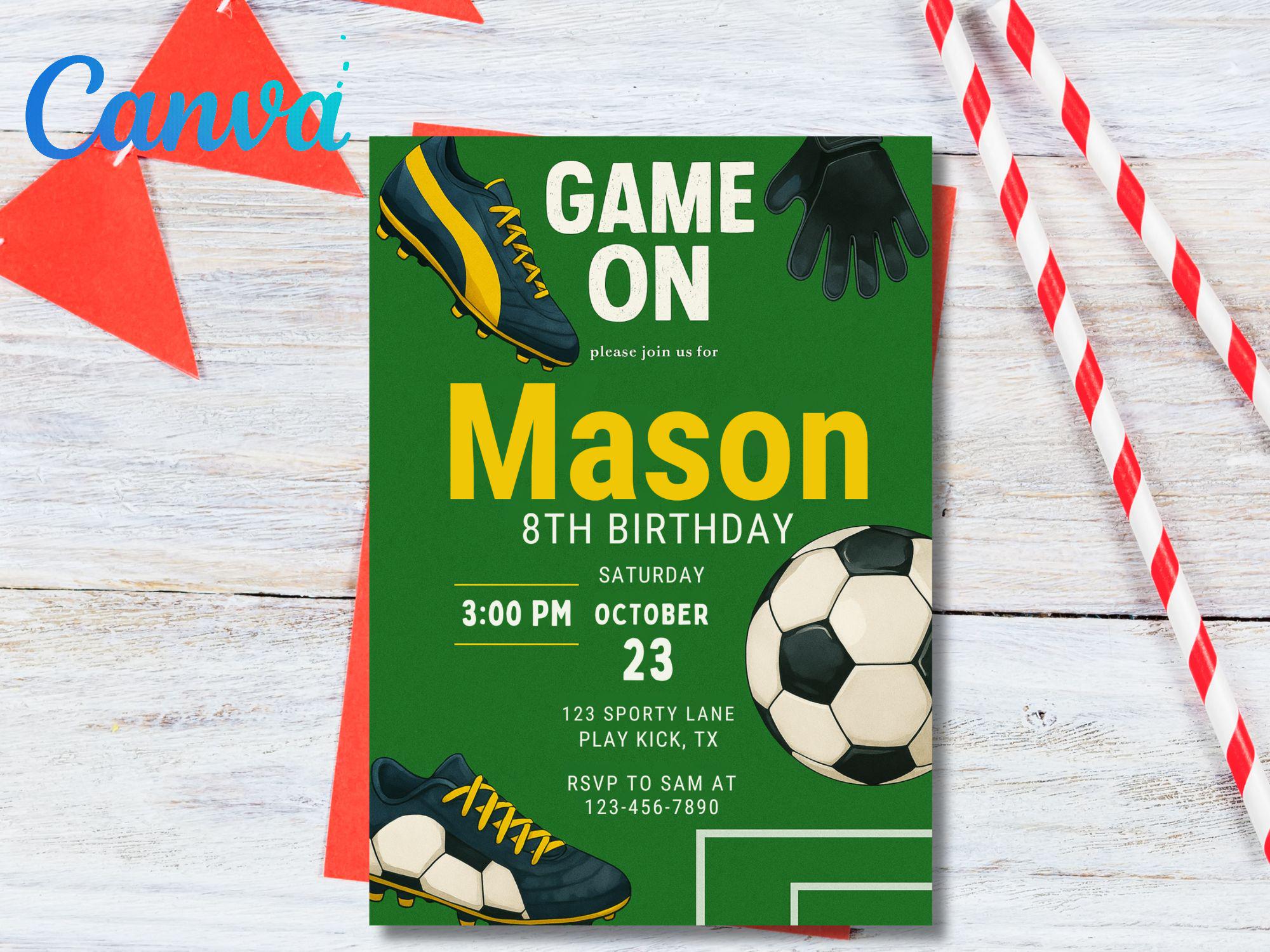 Soccer Birthday Invitation, Editable Soccer Party Invite, Sports Theme, Kids Football Birthday, Instant Download, Digital Template