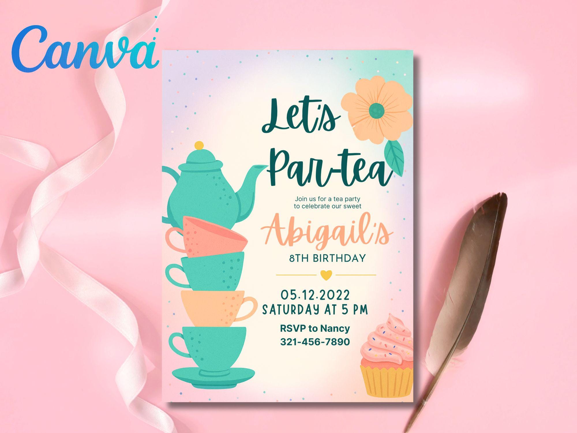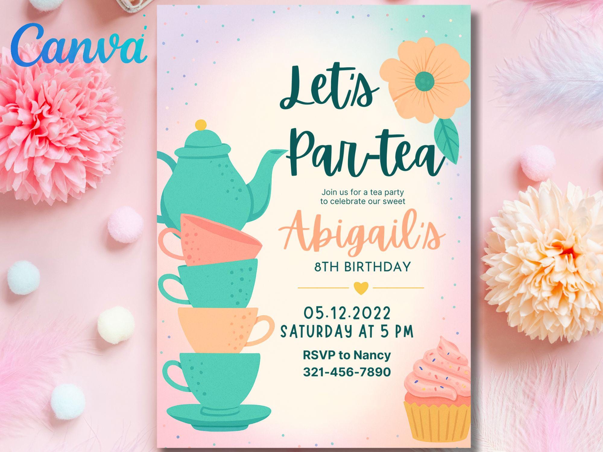 Editable Tea Party Birthday Invitation, Par-tea Invitation, Girl Par-tea Invite, Pink Gold Whimsical Tea Party, Invites, Instant Download