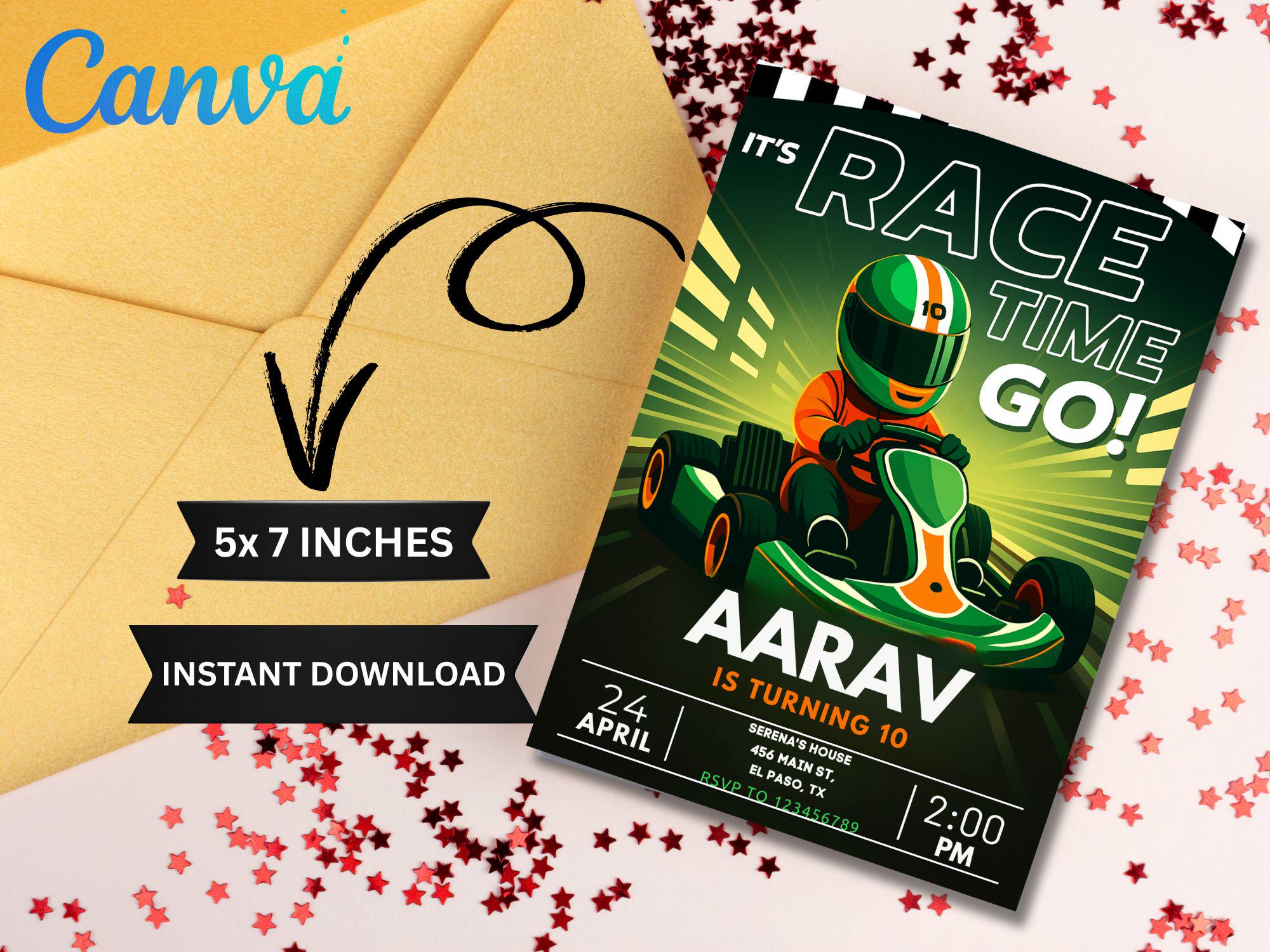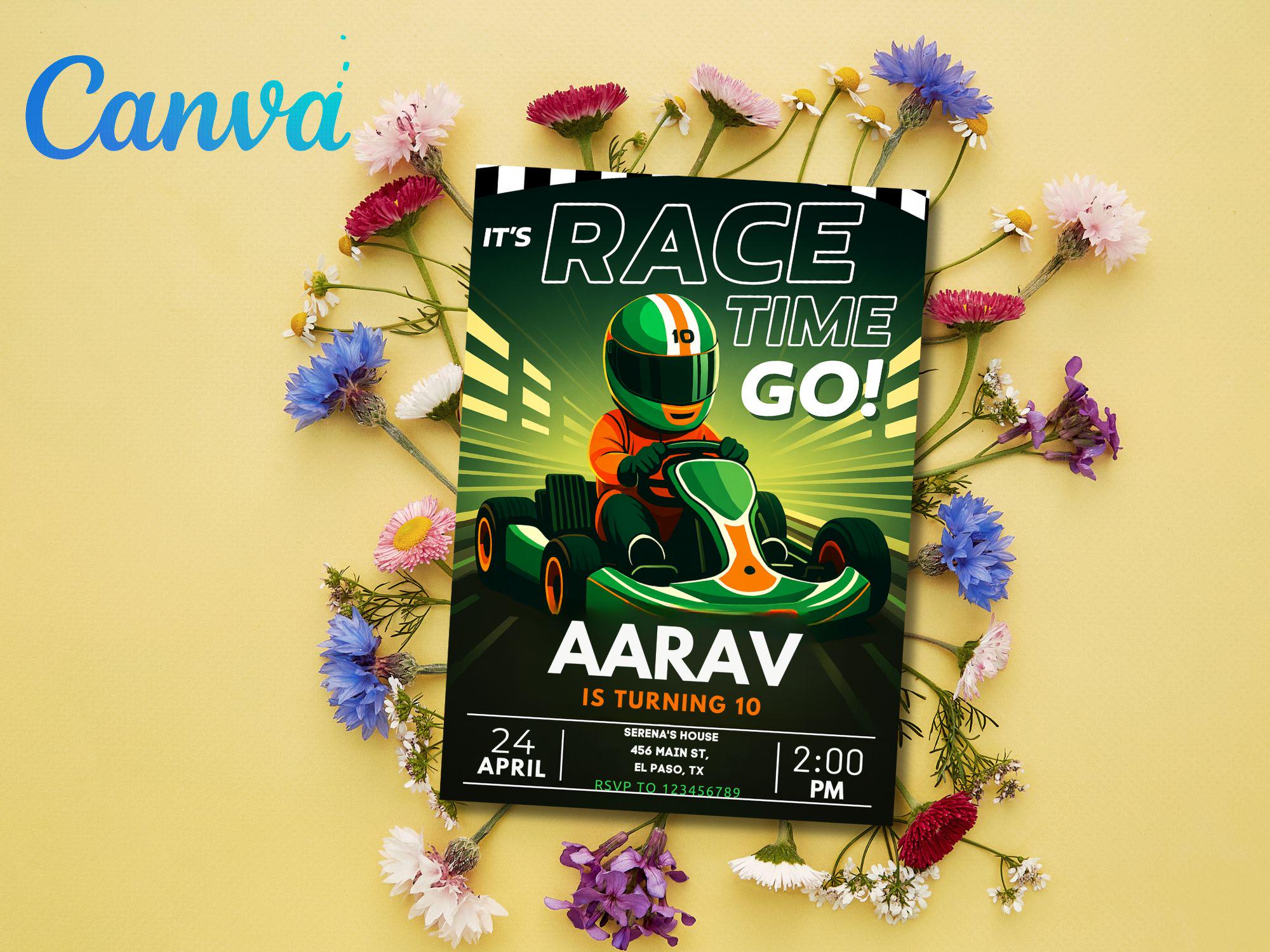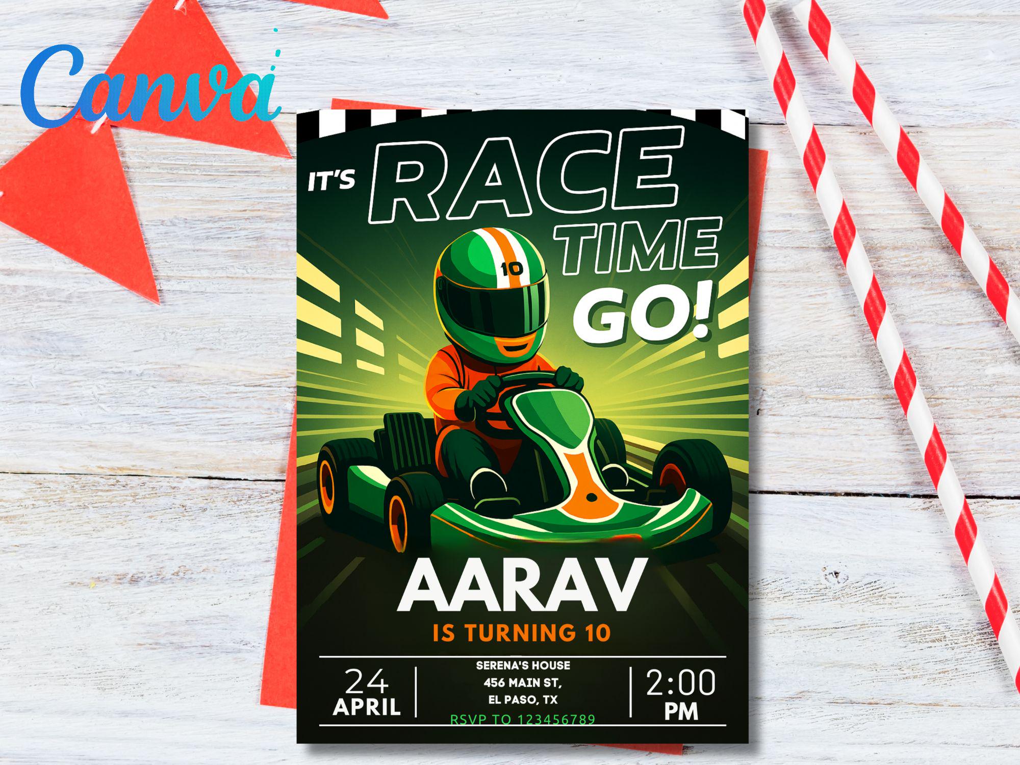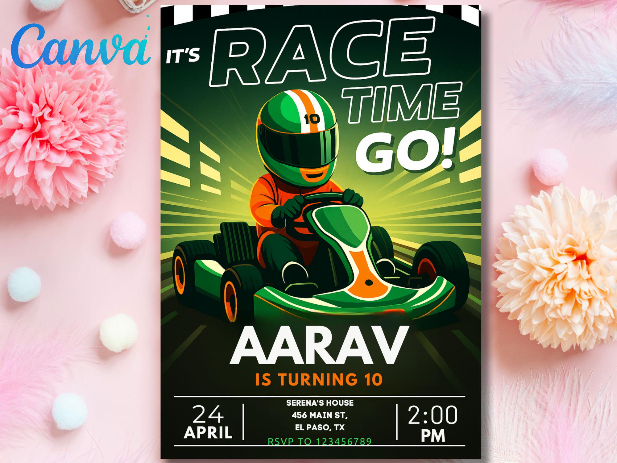 Neon Go Kart Birthday Party Invitation: Editable Canva Template (Digital Download) Go Kart Go Kart Birthday Go Kart Invitation Kart Invite