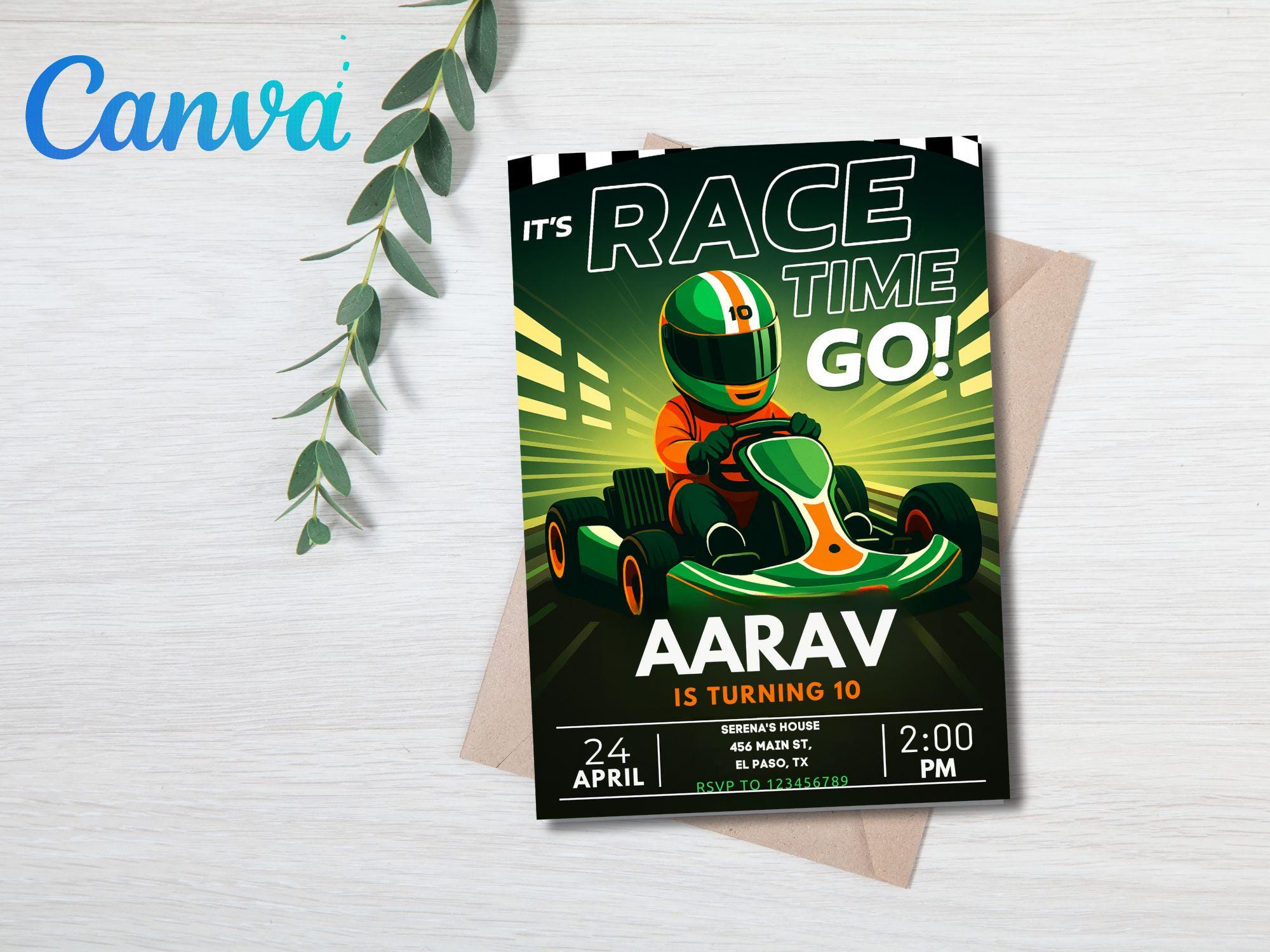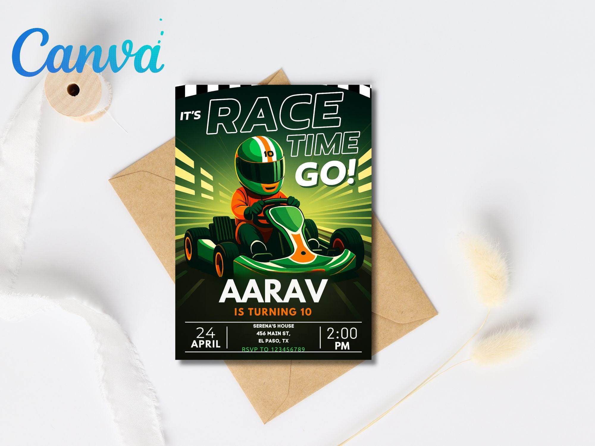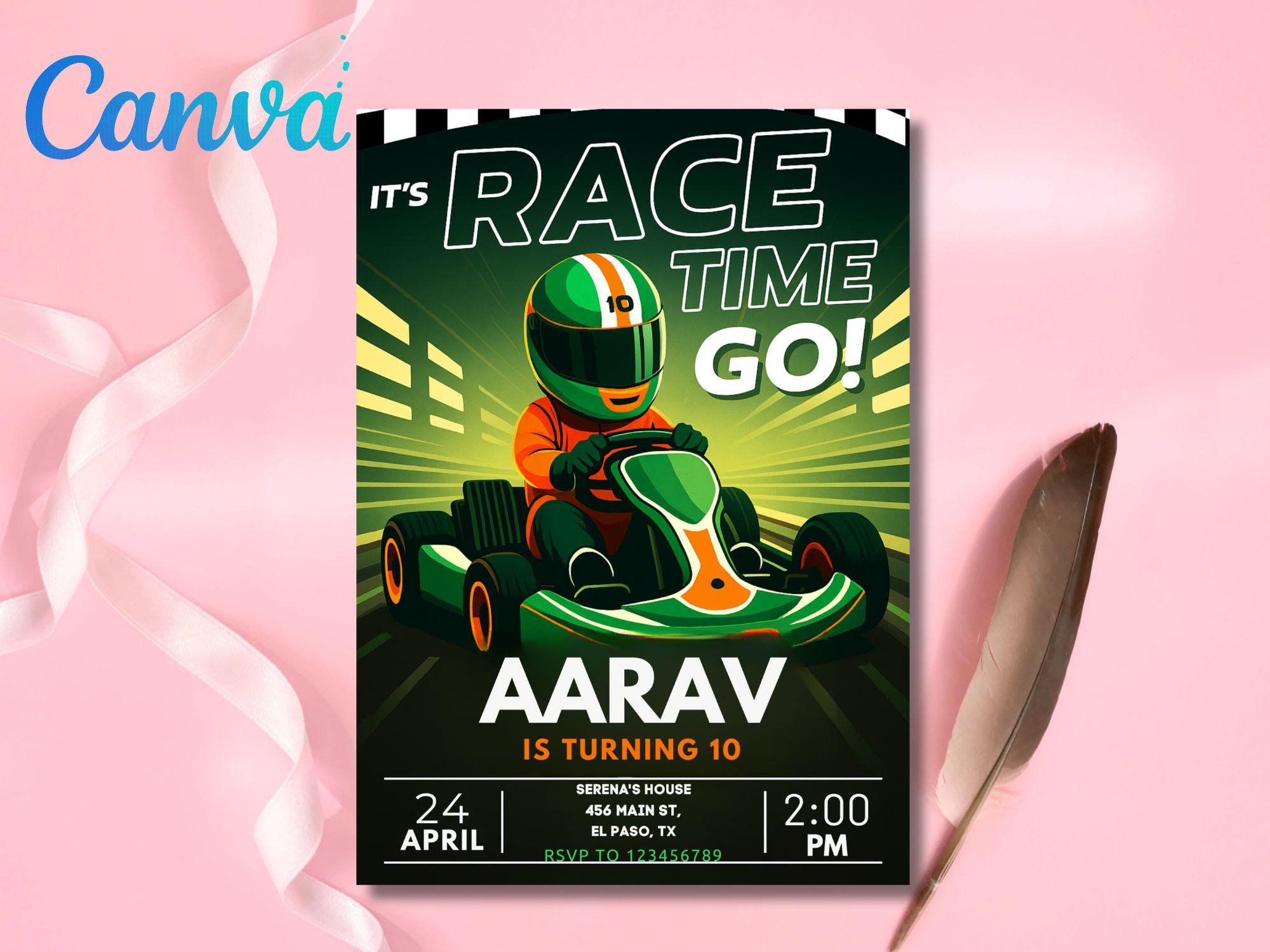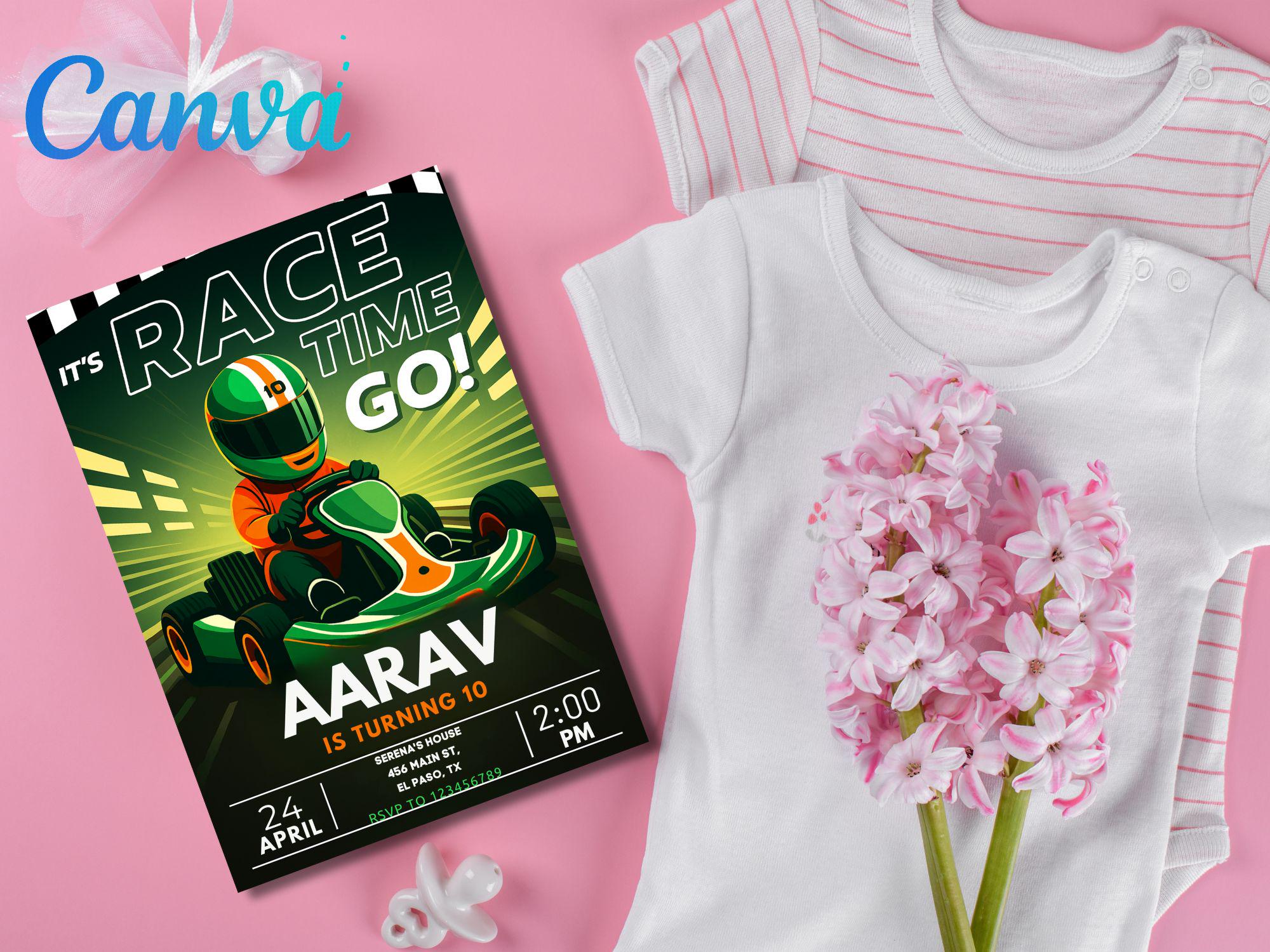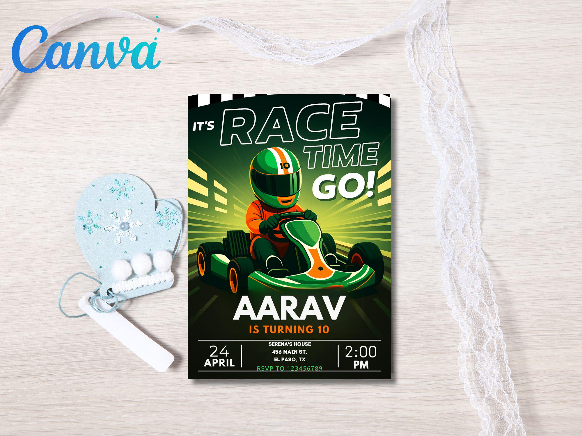 Neon Go Kart Birthday Party Invitation: Editable Canva Template (Digital Download) Go Kart Go Kart Birthday Go Kart Invitation Kart Invite