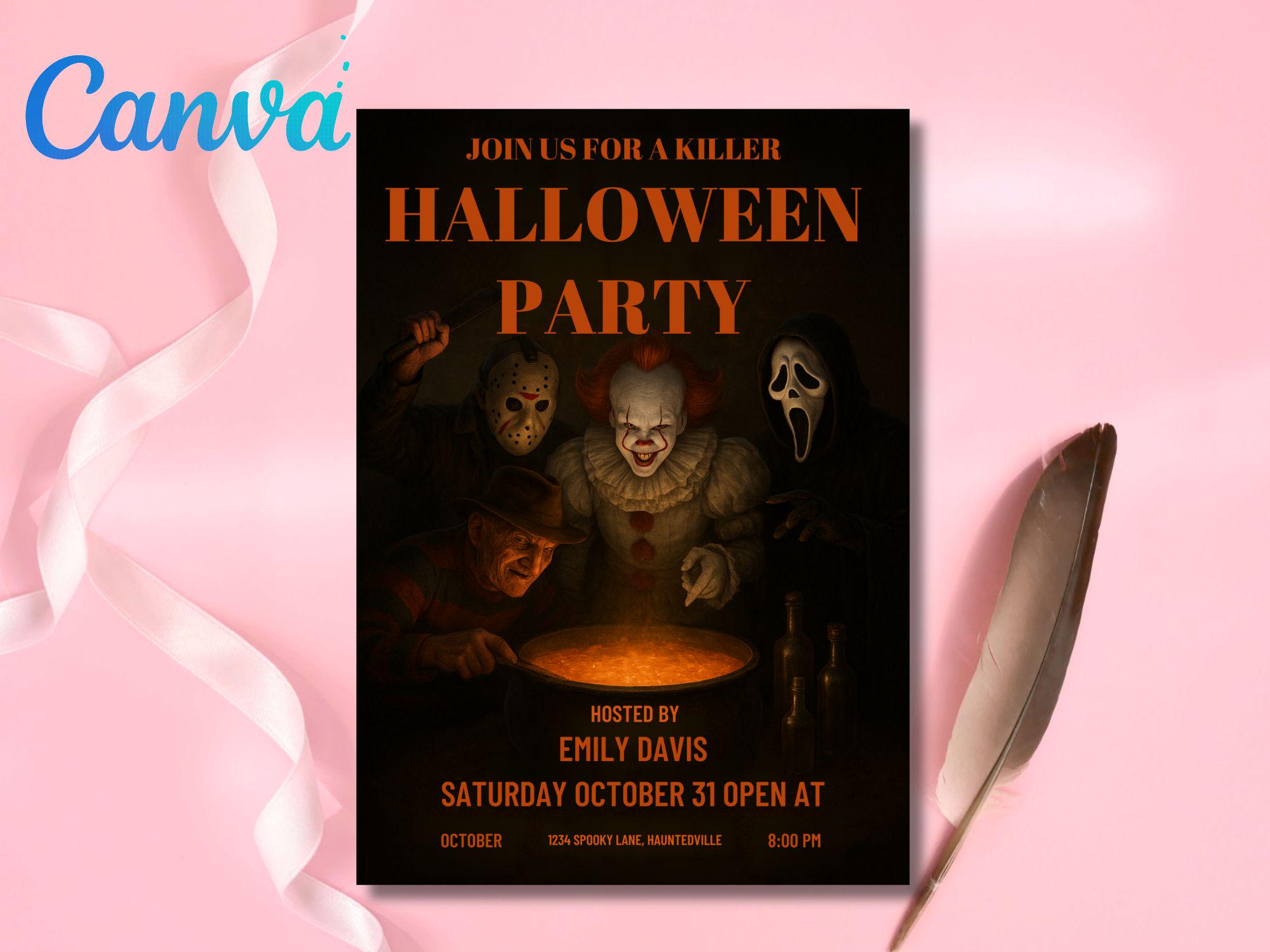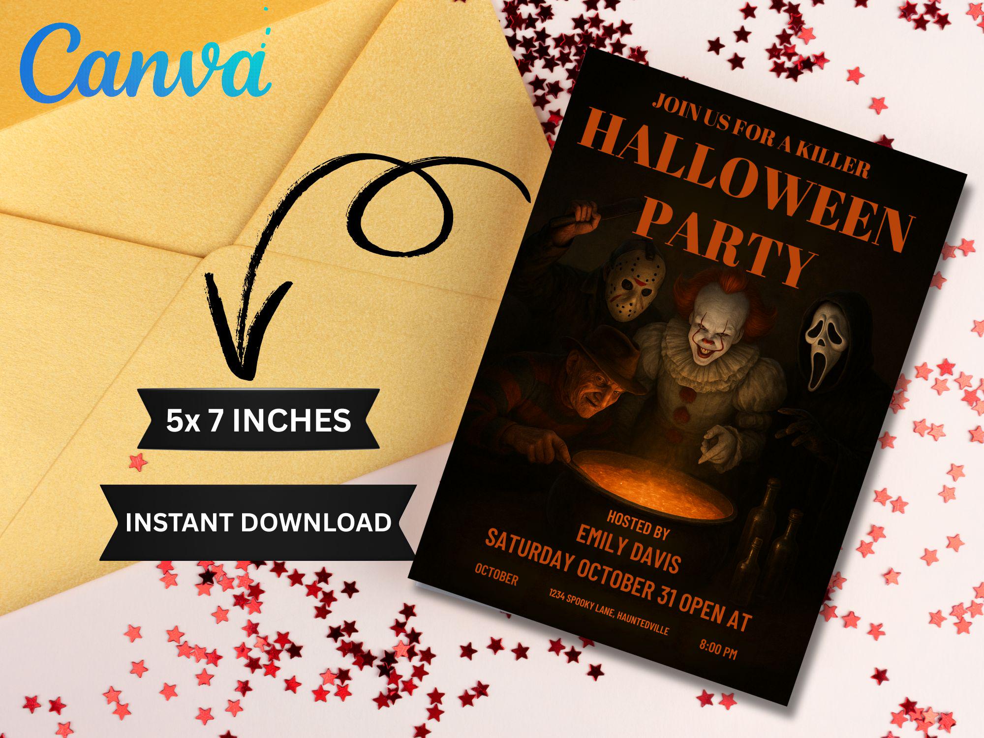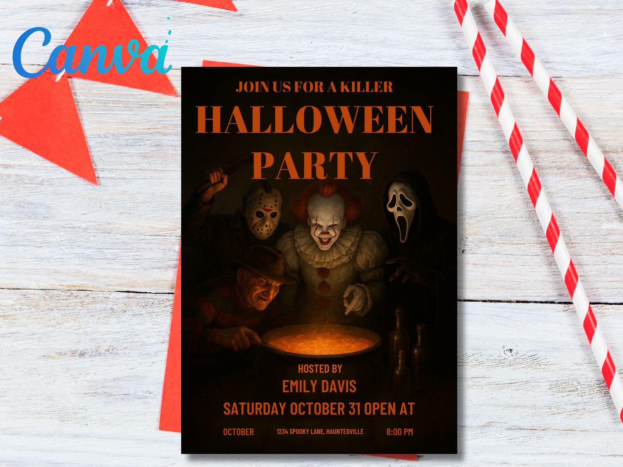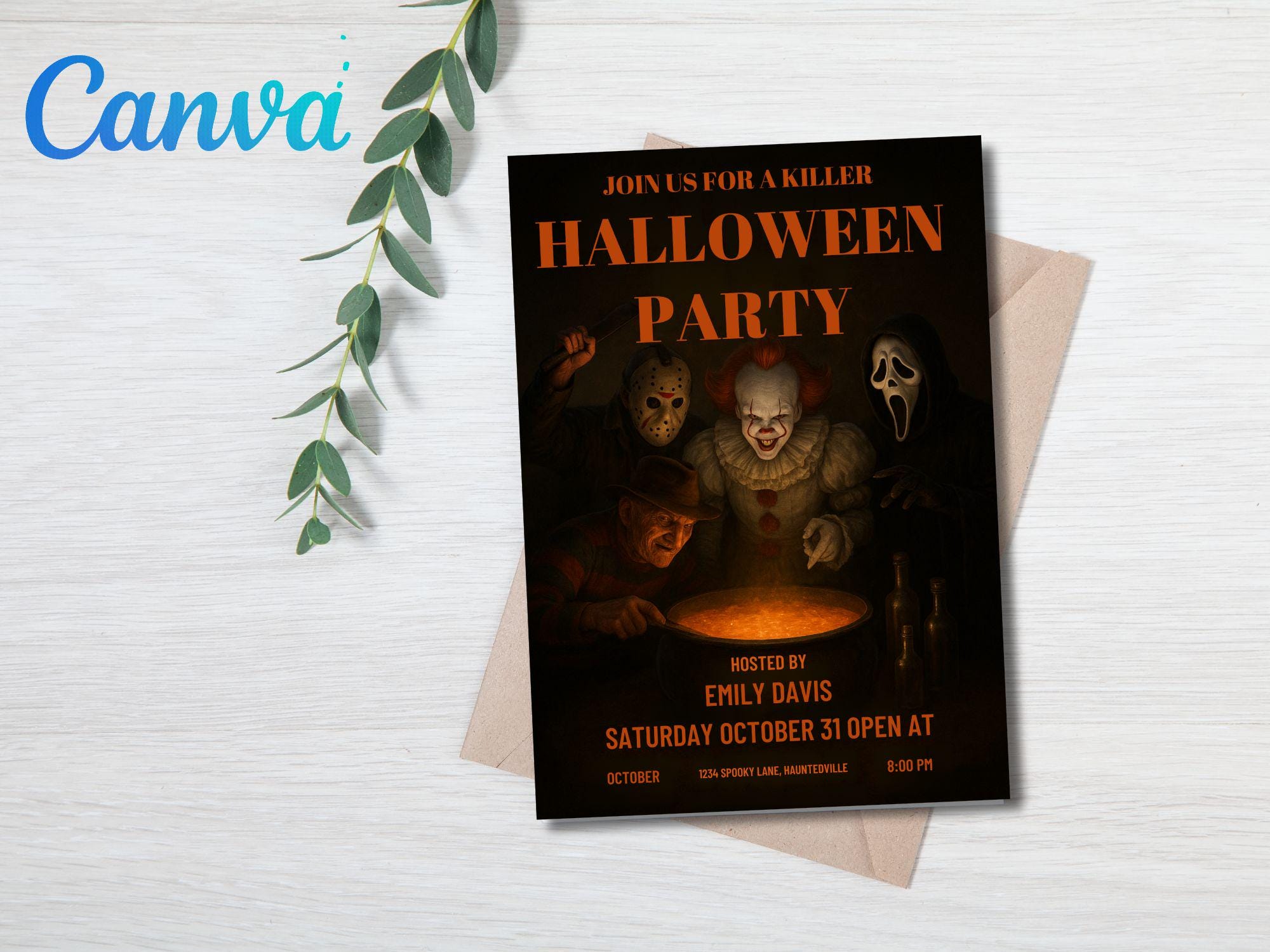 Editable Halloween Party Invitation | Funny Drunk Horror Icons Theme | Adult Spooky House Party Template | Instant Download – Printable Digital Invite bd9899999999999111