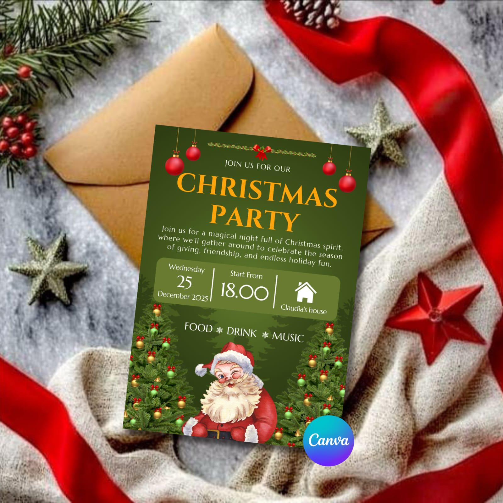 Christmas Invite, Friends mas Invite, Christmas Print able, Holiday Party Invite, Digital Invitation, Santa Invitation, Party Invitation, Christmas Template, Digital download, Christmas Canva, Invitation Template, Christmas Party, Instant Download, Digital Christmas Party Invitation, Friends mas Invite, Christmas Invitation Template, Santa Festive Holiday Invite.