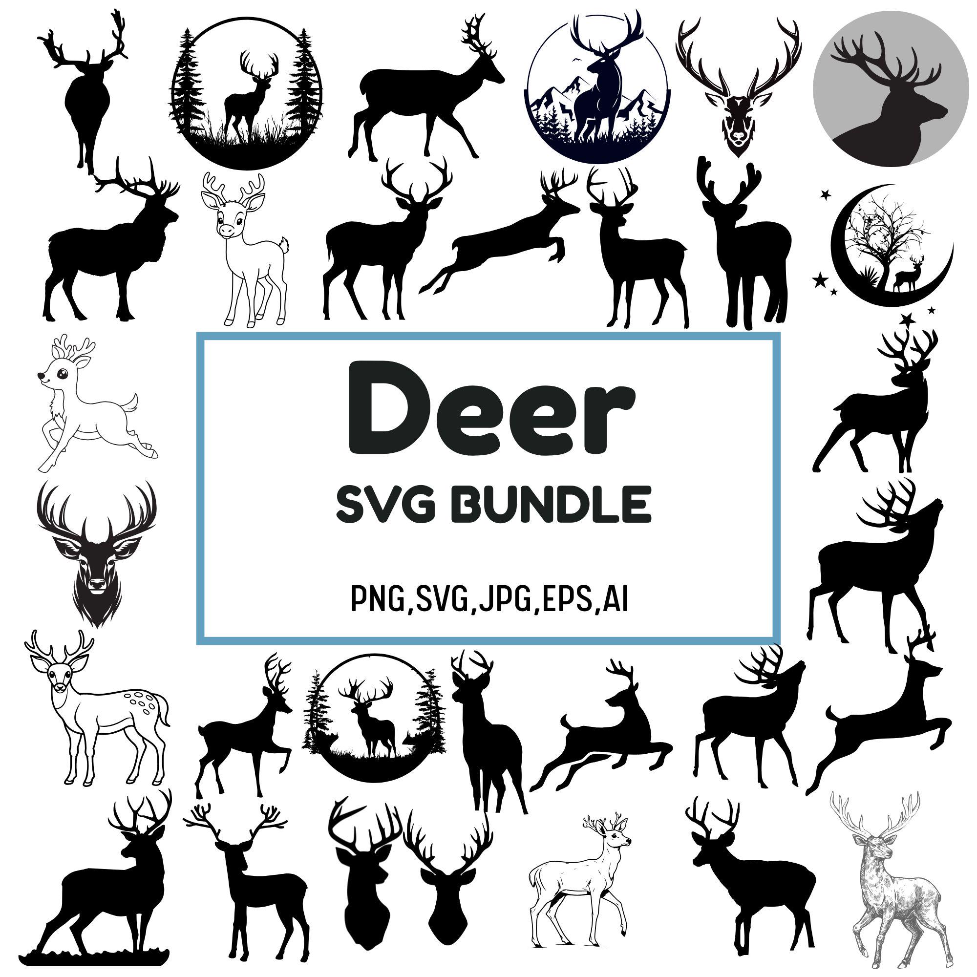 Deer SVG Bundle, Deer Hunting SVG, Deer png, Deer vector, Deer cut files, Deer head svg, Deer antlers svg, Laser Cut files, Deer Clip Art