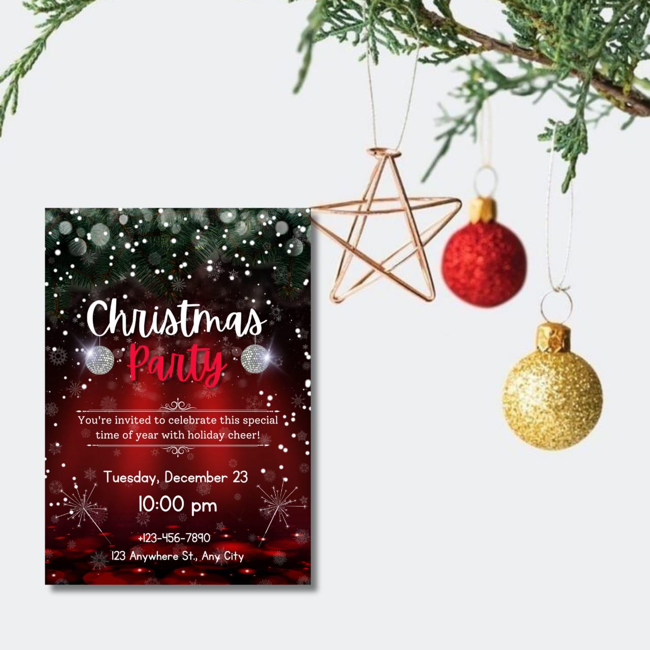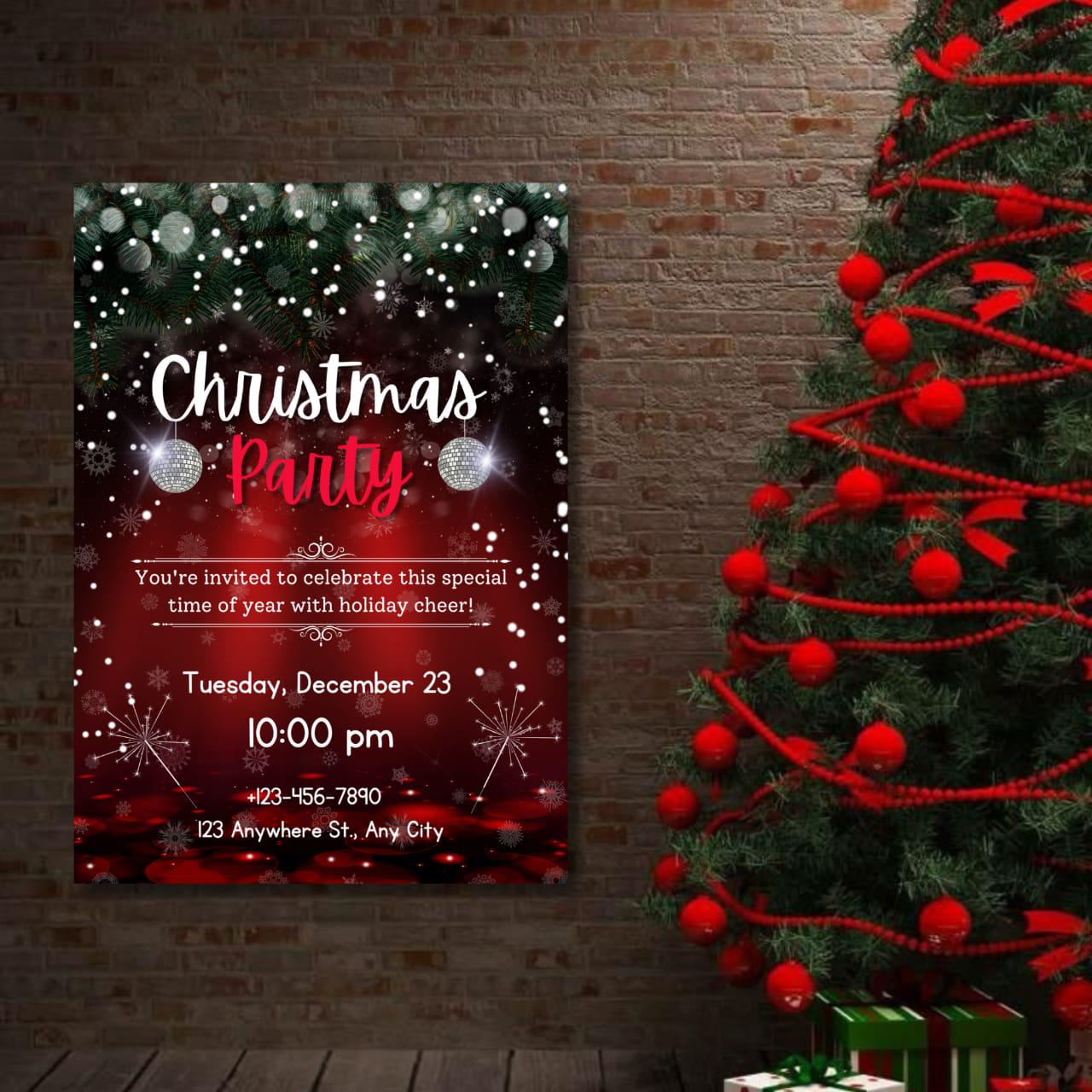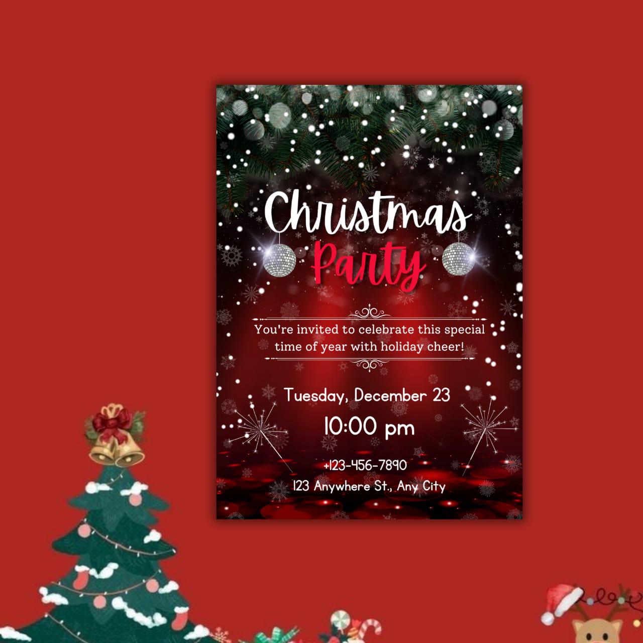 This invitation card is perfect for both digital sharing and at-home printing, catering to modern hosts who appreciate simplicity and style. Whether you're hosting a classic holiday dinner party or a vibrant winter celebration, the sleek layout and festive flair promise a memorable evening for your guests. Introduce a dash of festive charm with the included party invitation bow graphic, giving your holiday invitation the appearance of a beautifully wrapped gift. From formal Christmas dinner invitations to lively Friends mas celebrations, this Christmas party flyer offers endless flexibility and creativity. The high-resolution design ensures an impressive presentation, whether viewed digitally or held in hand, making it the perfect digital holiday invite for friends and family alike. Celebrate the season with an invitation that not only welcomes but wows. This elegant holiday invite is your canvas for creativity, inviting you into a world where festive gatherings are as much about the invitation as they are about the event itself. Revel in the holiday spirit with ease and sophistication, knowing your digital invitation is as joyous and welcoming as the celebration it announces. Embrace the winter festivities with this stunning invitation template, ensuring every holiday dinner invite is both personal and perfect.