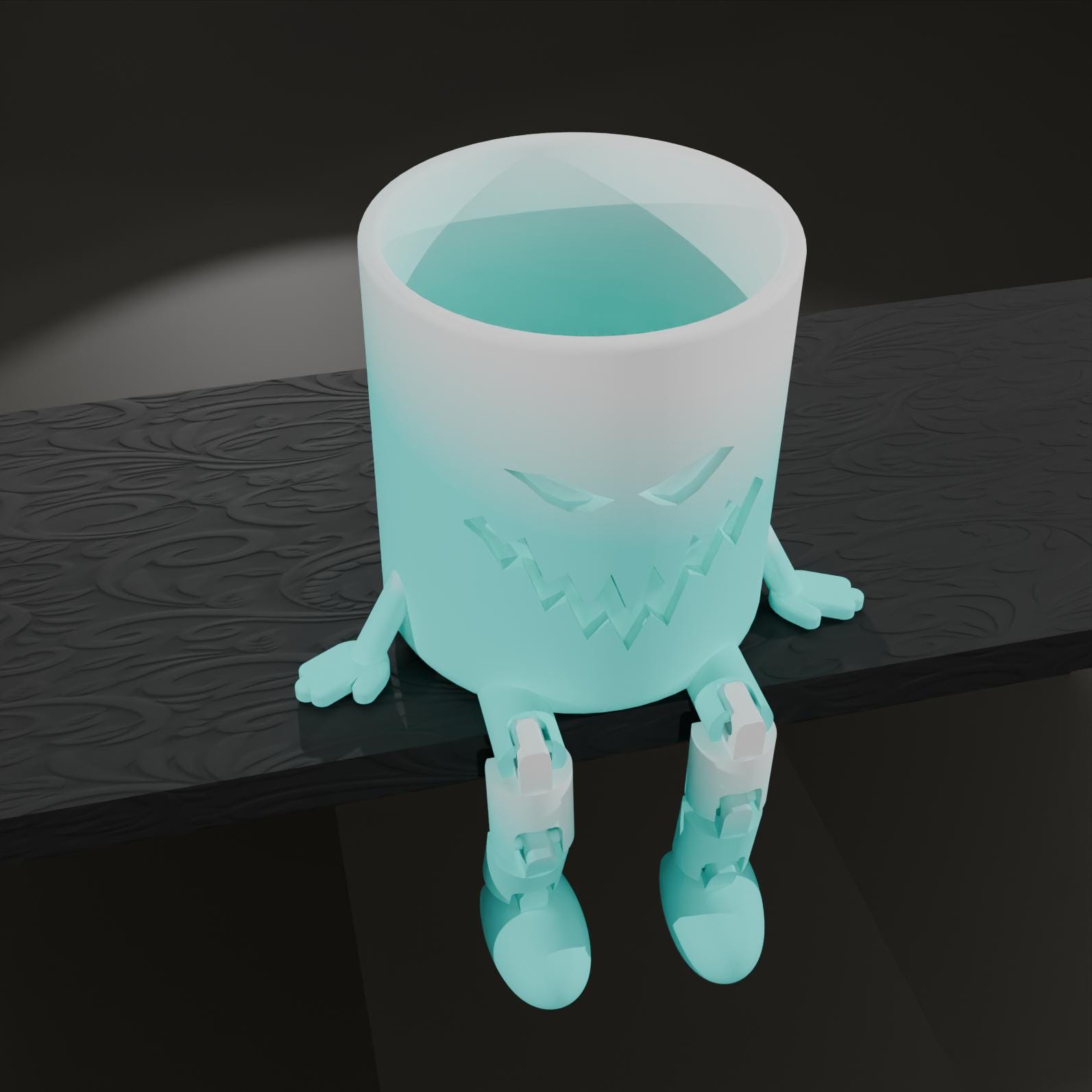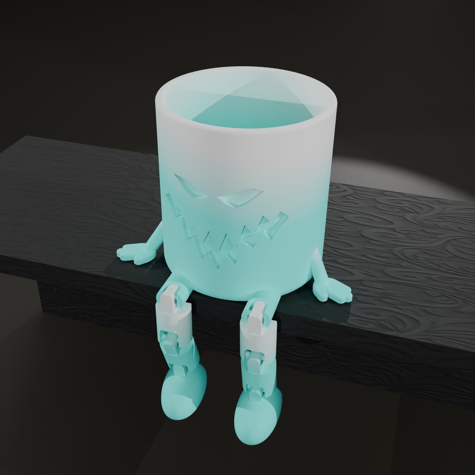 Kawaii Spooky Coffee Cup STL | Cute Flexi Figurine 3D Print Sitting Coffee Mug Toy STL Bewegliche Beine Kaffeebecher 3D Druck Datei 3d Mug
