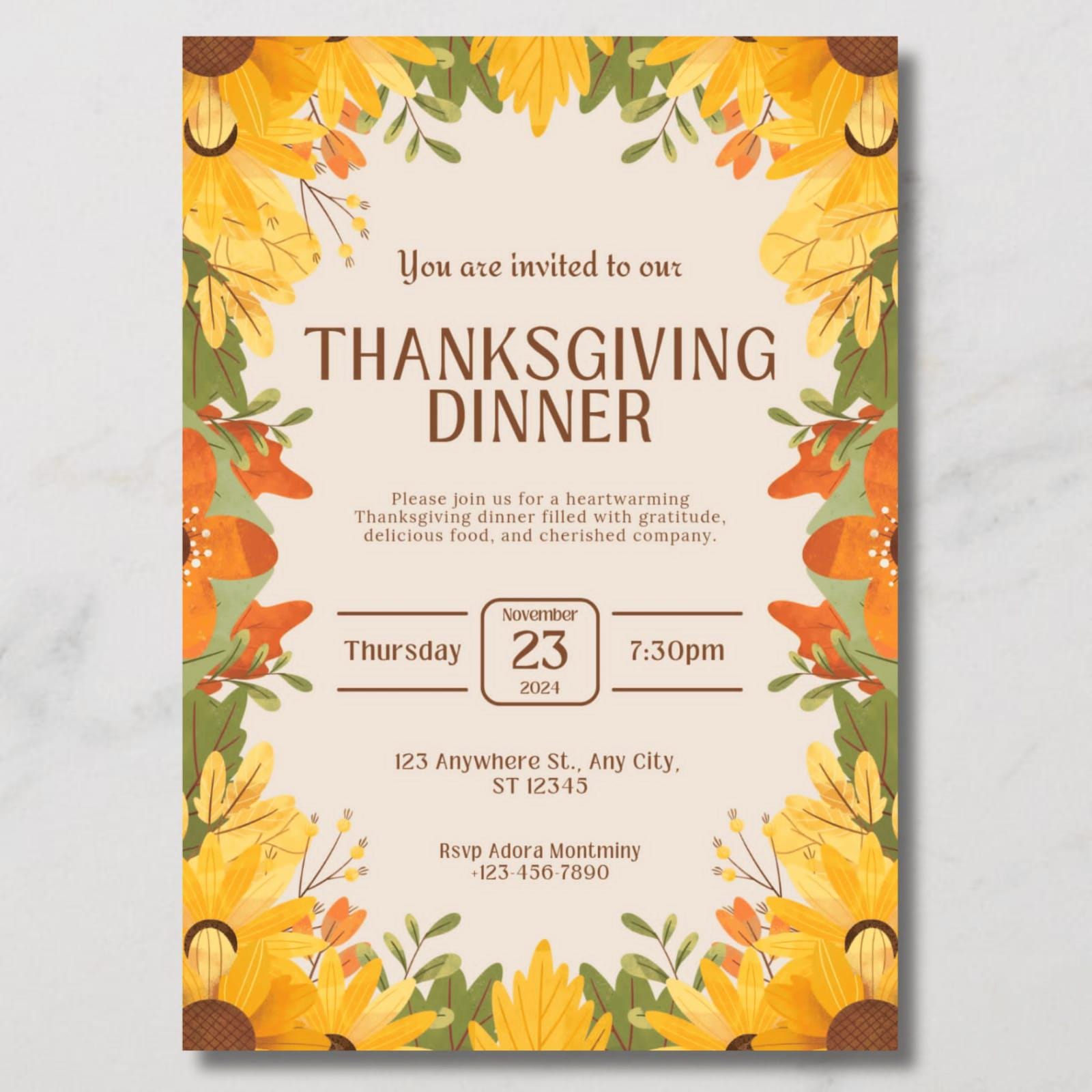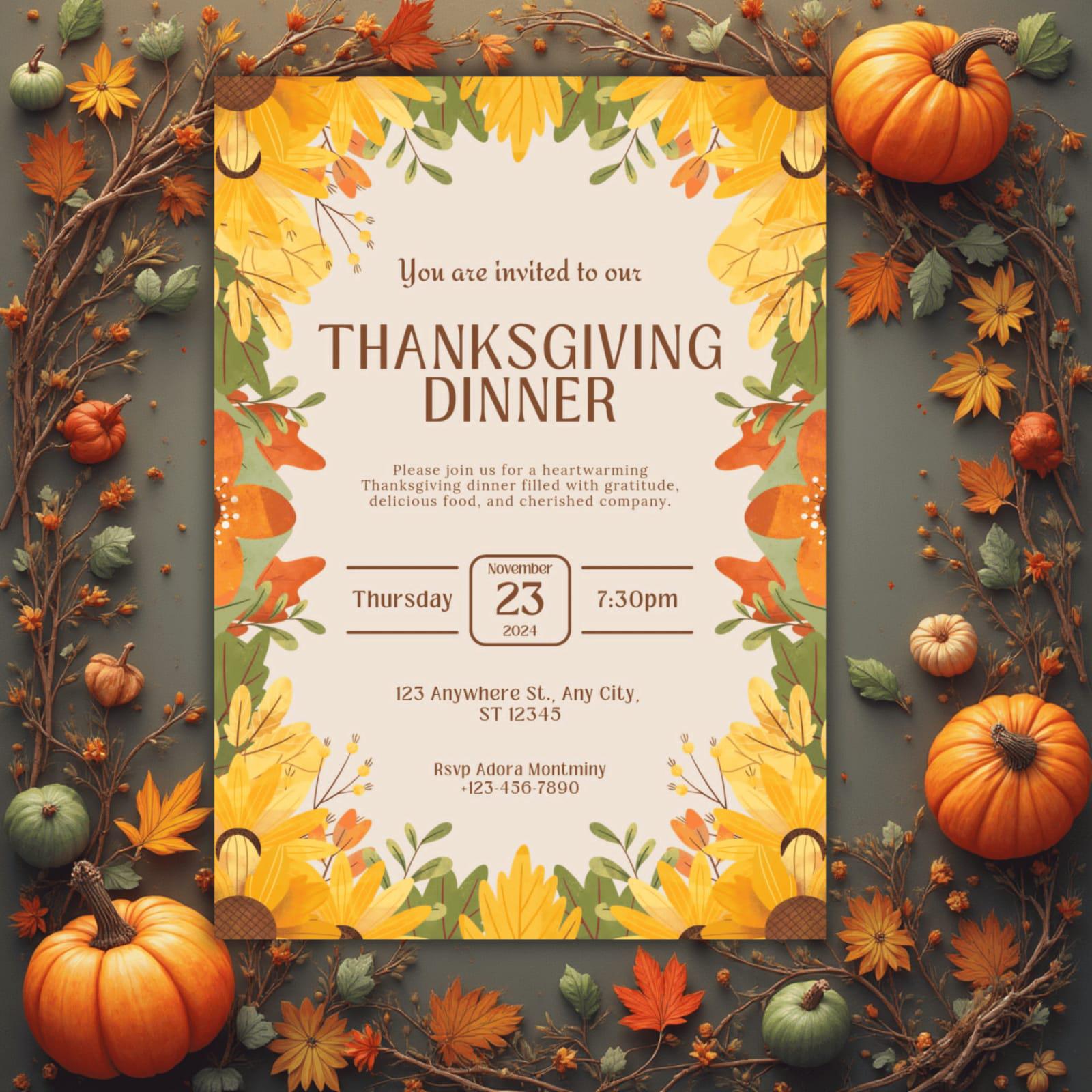 Give your holiday celebration a personal touch with this **Editable Thanksgiving Canva Template** – a **digital download** you can customize instantly! Designed in Canva, this **Thanksgiving invitation and printable décor** is perfect for Friendsgiving, fall parties, family gatherings, or autumn celebrations.