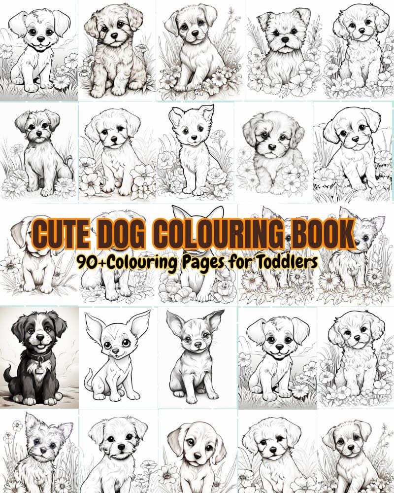 Baby Dog Coloring Pages for Kids – 90+ Pages Printable Coloring Book | Easy Puppy Coloring Sheets | Preschool & Toddlers | Instant Download PDF
